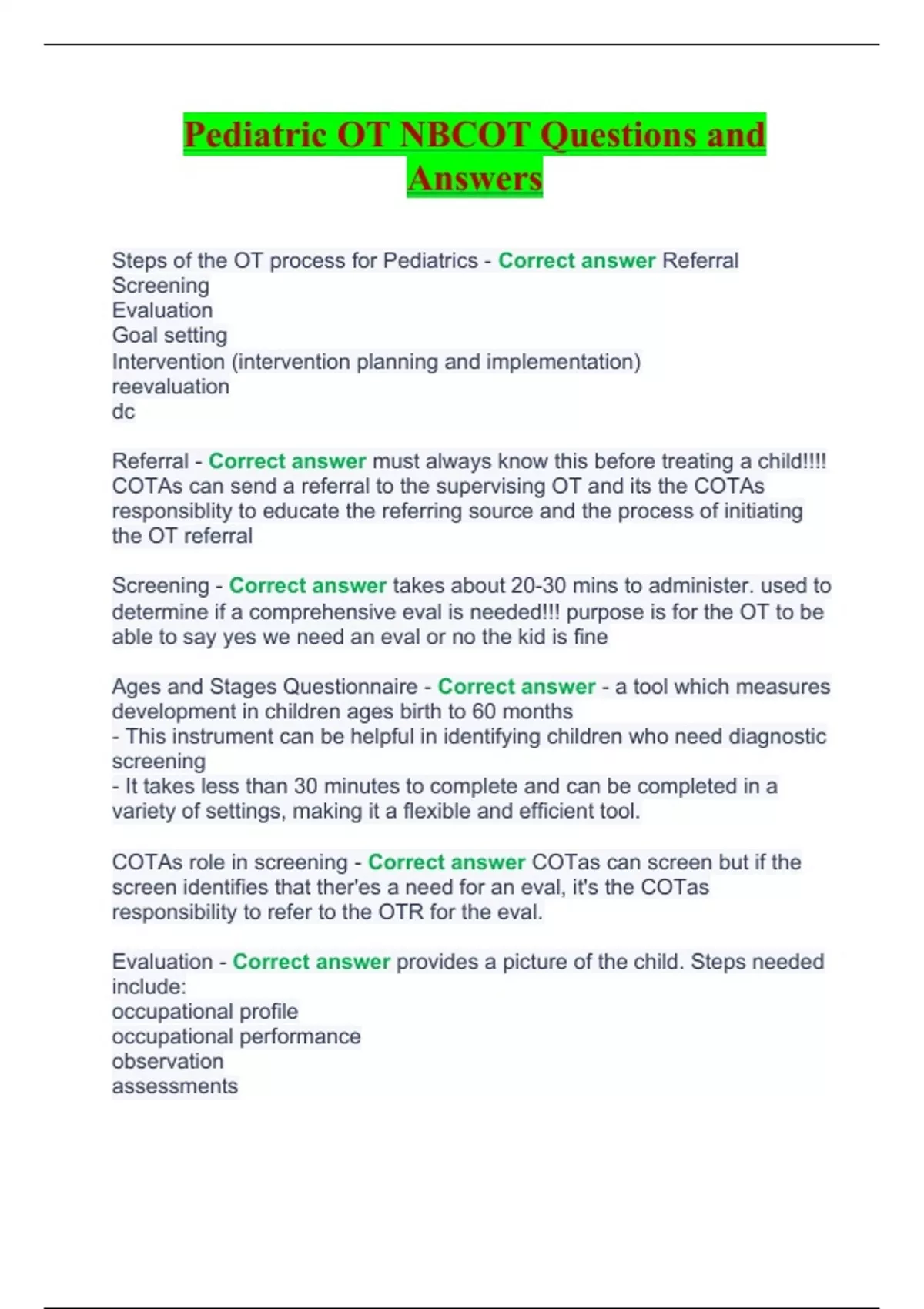 Pediatric OT NBCOT Questions and Answers.Pediatric OT NBCOT Questions and Answers.