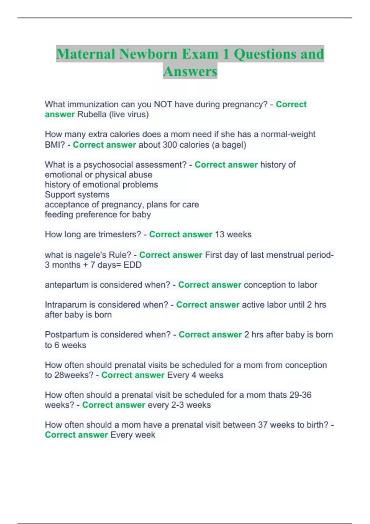 Maternal Newborn Exam 1 Questions and Answers.Maternal Newborn Exam 1 Questions and Answers.