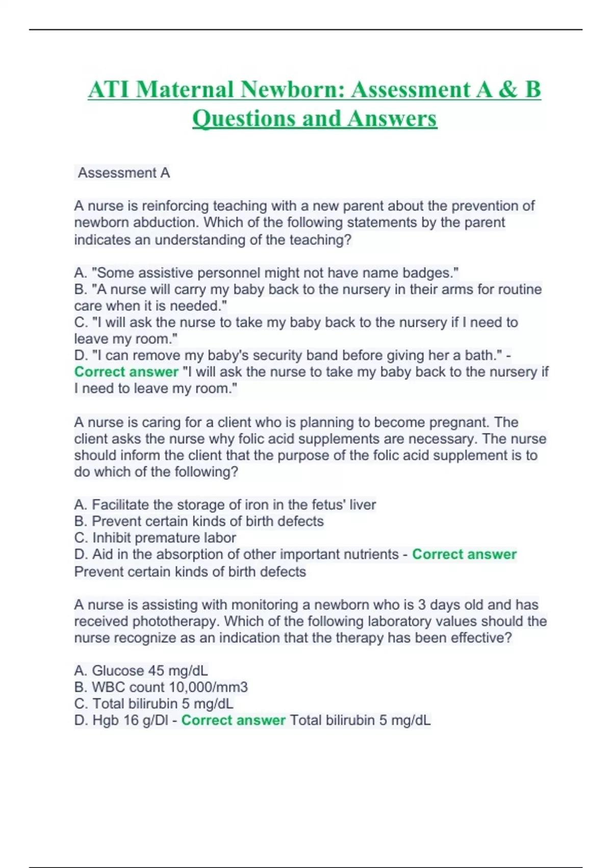 ATI Maternal Newborn Assessment A & B Questions and Answers.