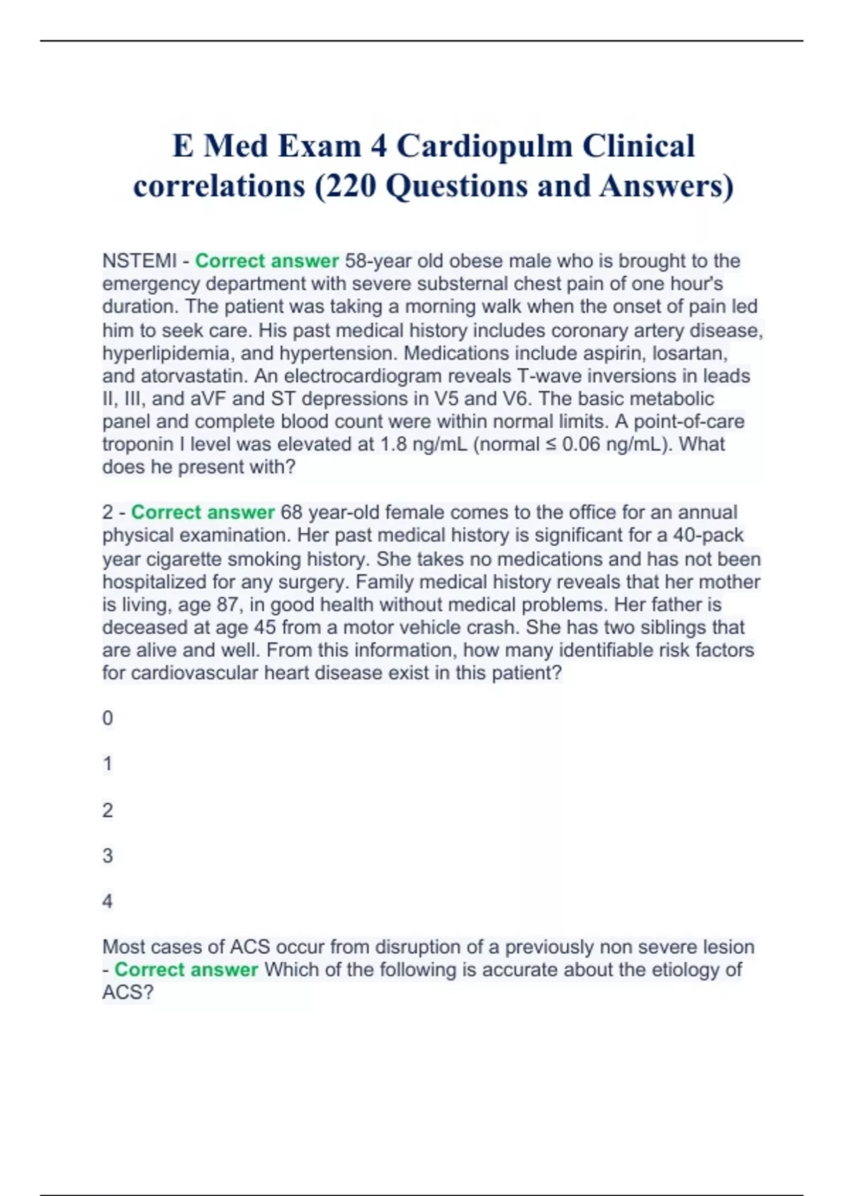E Med Exam 4 Cardiopulm Clinical correlationsE Med Exam 4 Cardiopulm Clinical correlations