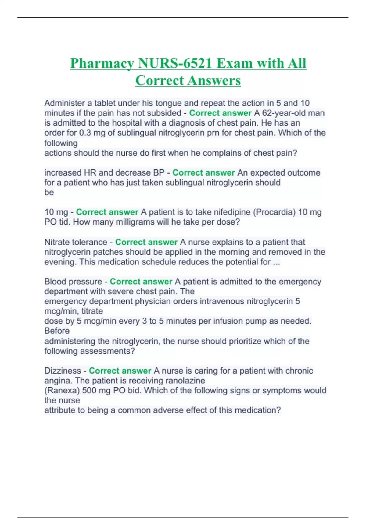 pharmacy nurs 6521 exam with all correct answers