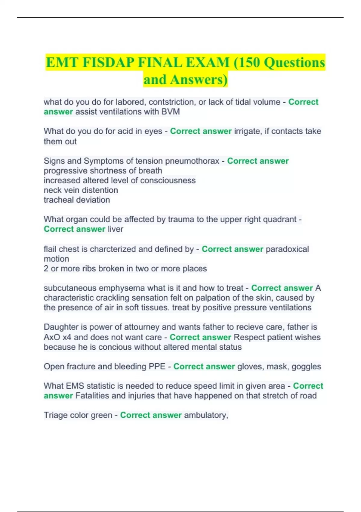 EMT FISDAP FINAL EXAMEMT FISDAP FINAL EXAM