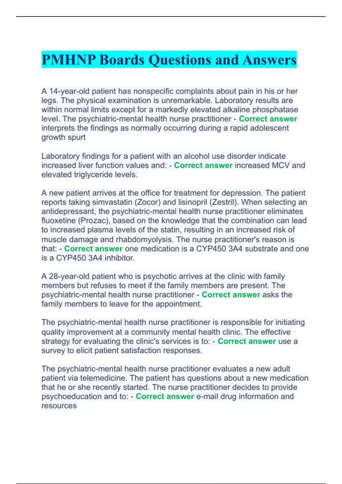 PMHNP Boards Questions and Answers.