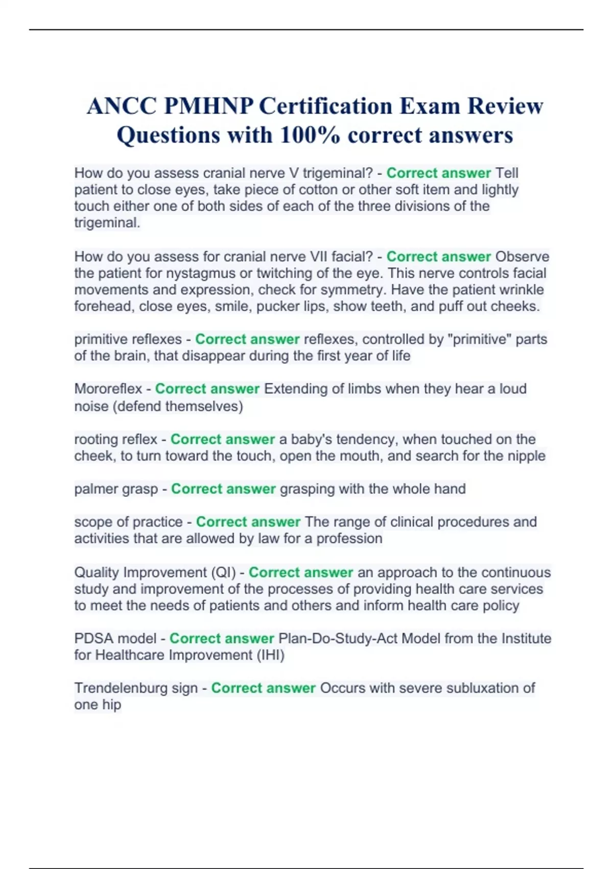 ANCC PMHNP Certification Exam Review Questions with 100.ANCC PMHNP Certification Exam Review Questions with 100.