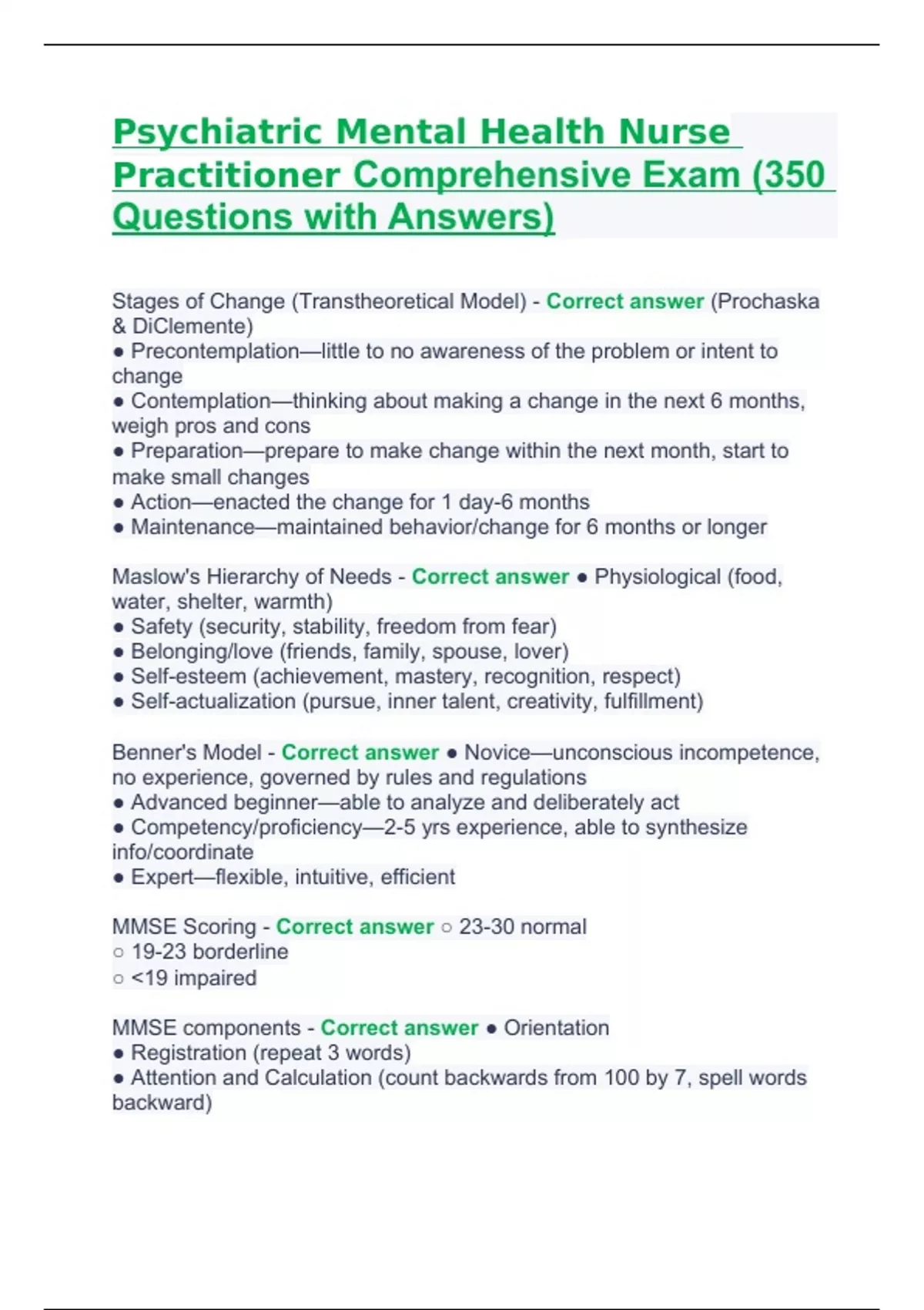 Psychiatric Mental Health Nurse Practitioner Comprehensive Exam with Answers.