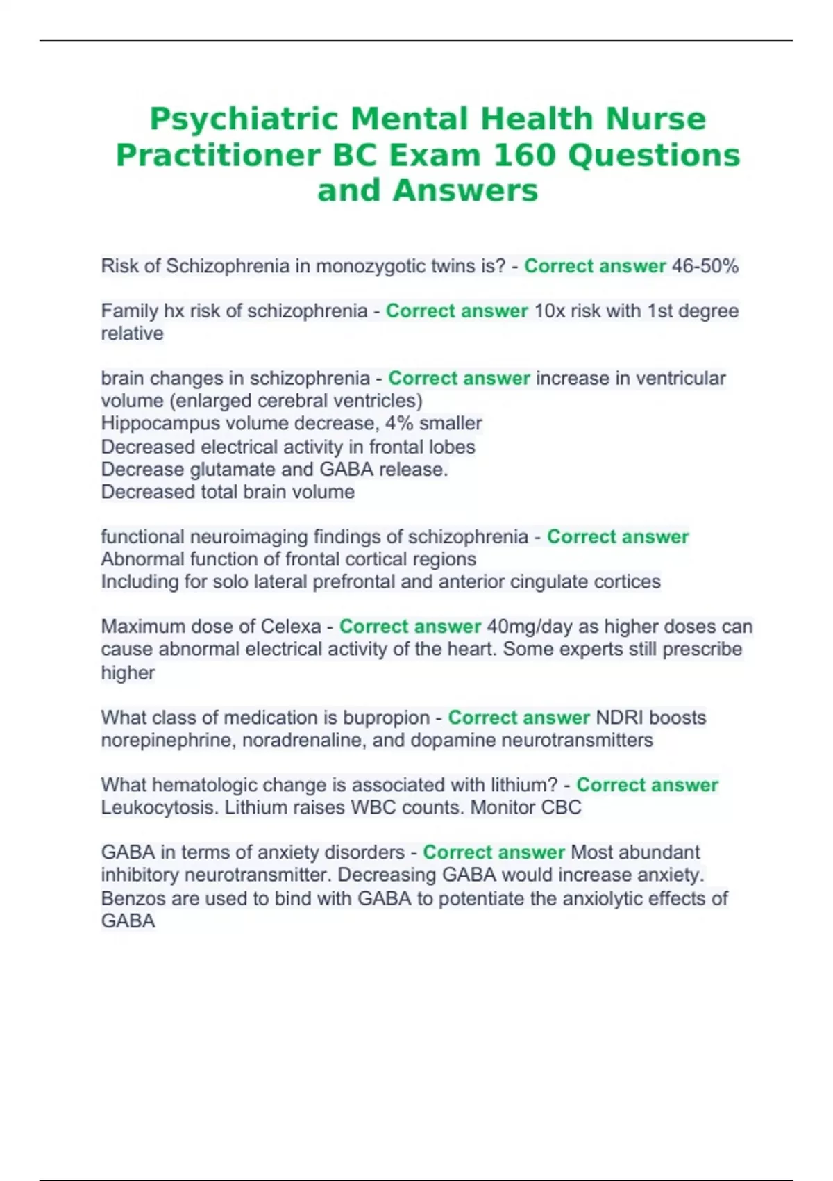 Psychiatric Mental Health Nurse Practitioner BC Exam Questions and Answers.Psychiatric Mental Health Nurse Practitioner BC Exam Questions and Answers.