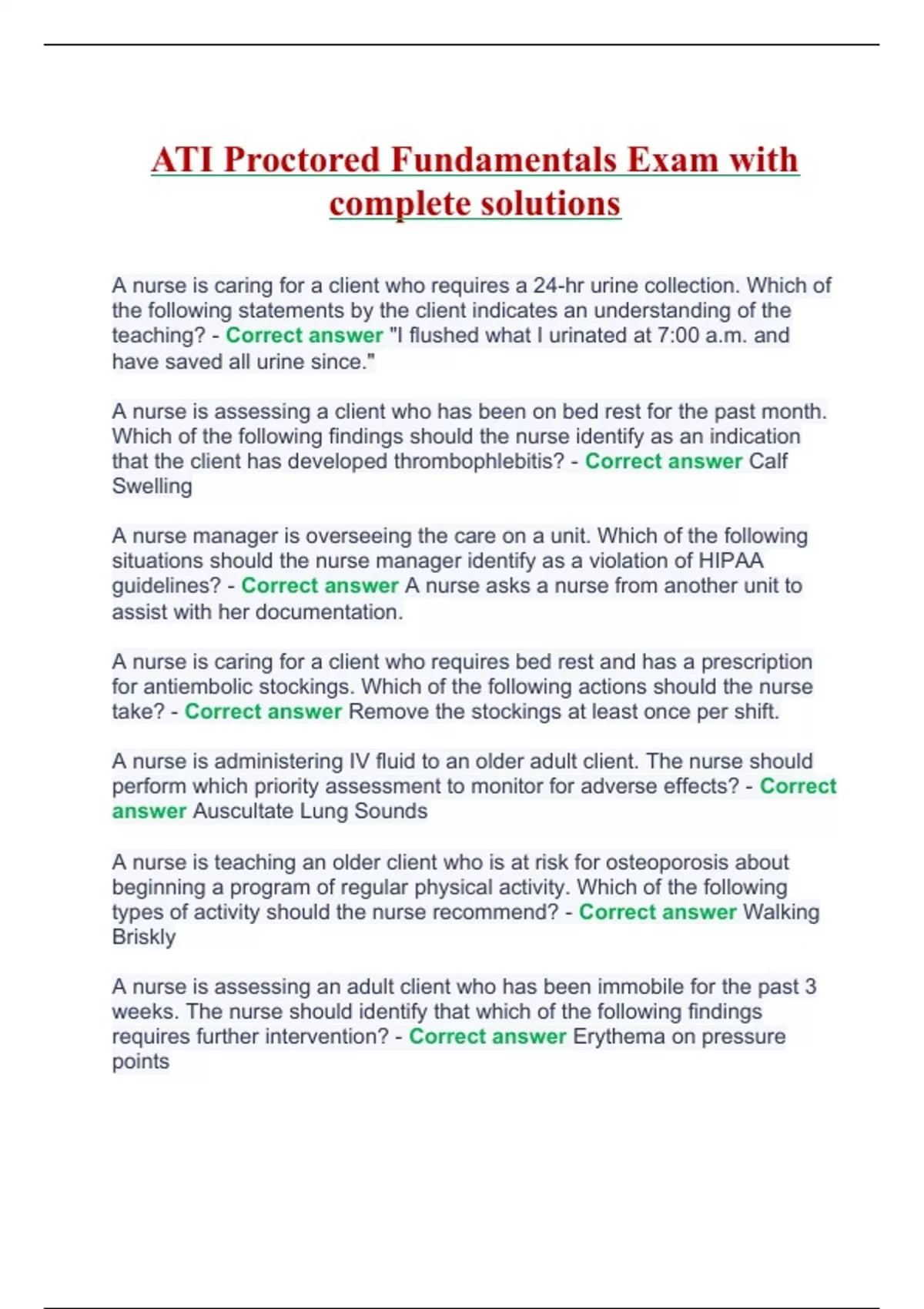 ATI Proctored Fundamentals Exam with complete solutions.ATI Proctored Fundamentals Exam with complete solutions.