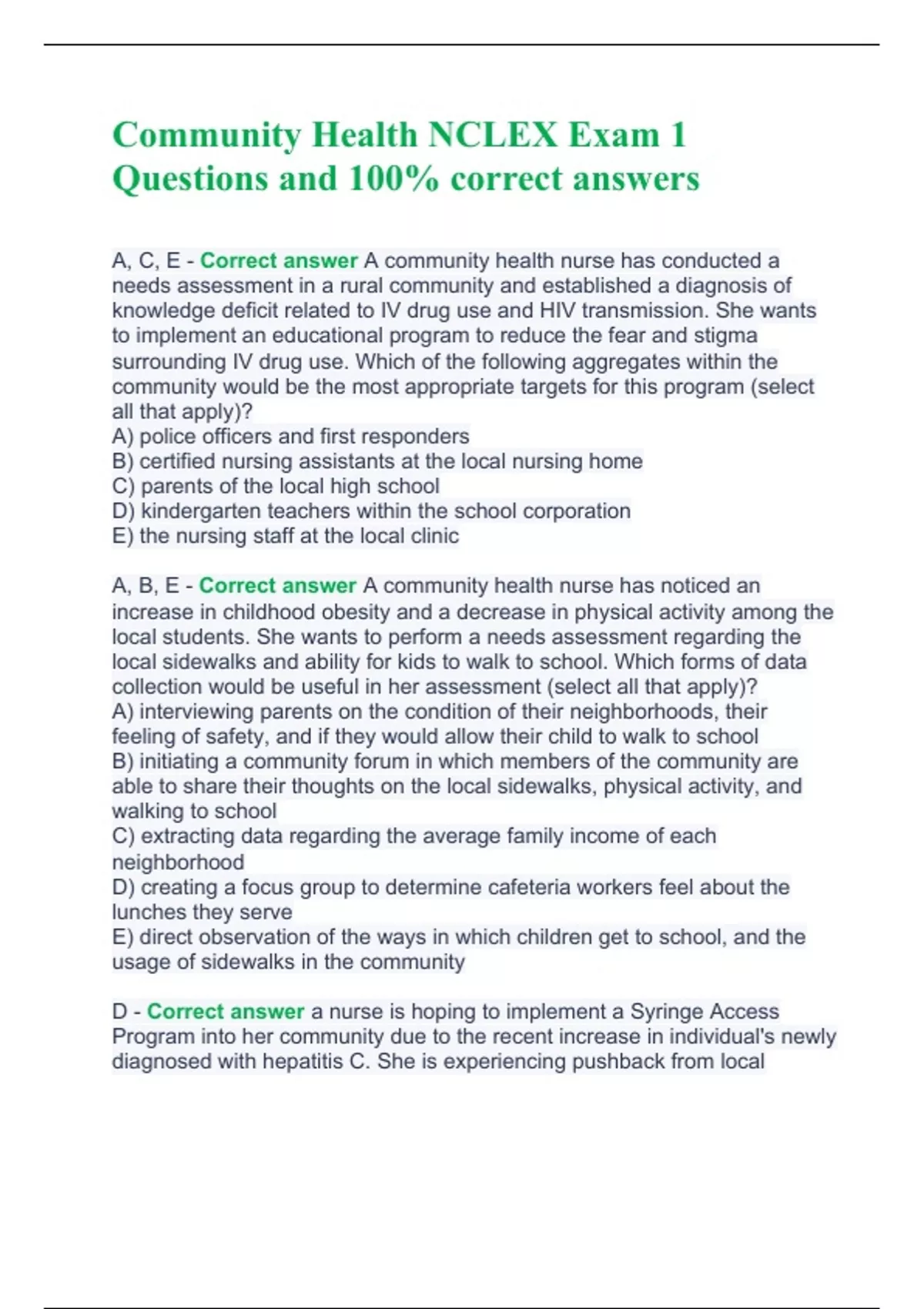 Community Health NCLEX Exam 1 Questions and 100.Community Health NCLEX Exam 1 Questions and 100.