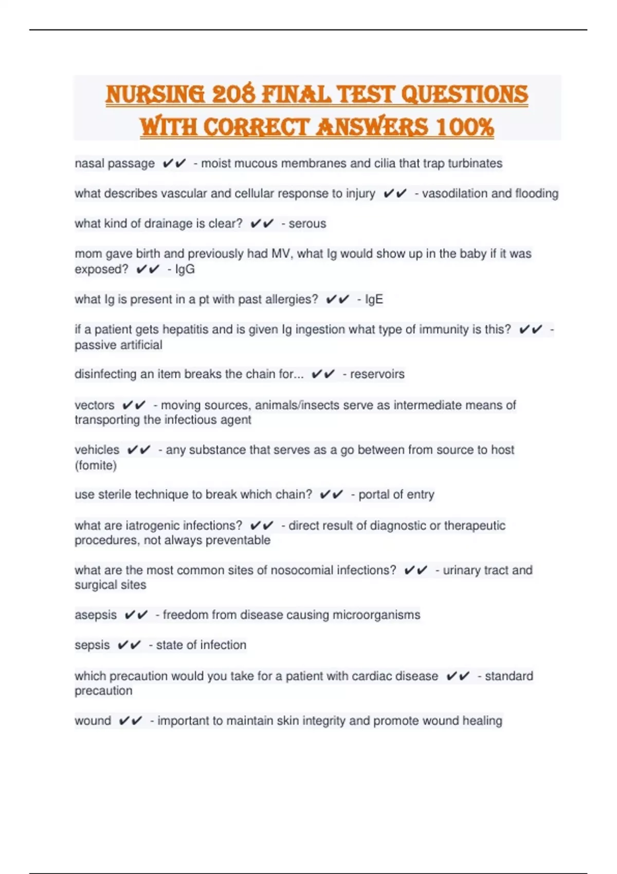 Nursing 208 Final Test Questions with Correct Answers 100%