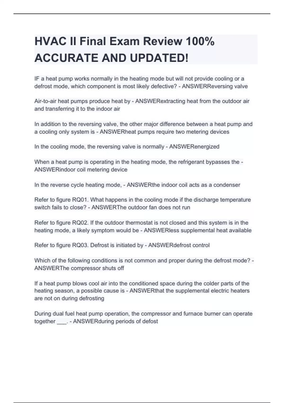 hvac ii final exam review stuvia