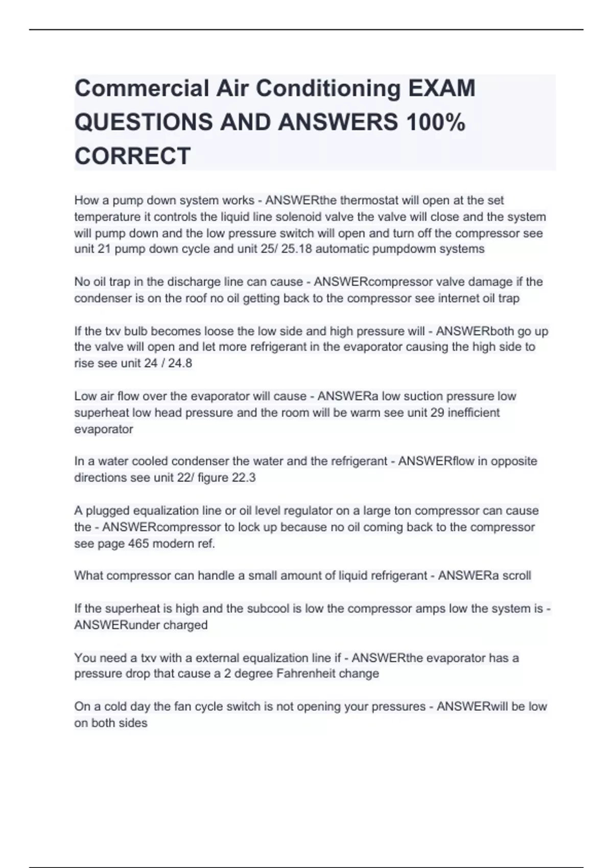 Commercial Air Conditioning EXAM QUESTIONS AND ANSWERS 100% CORRECT
