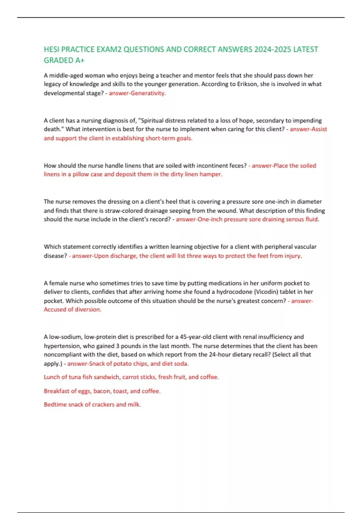 HESI PRACTICE EXAM2 QUESTIONS AND CORRECT ANSWERS LATEST GRADED A+ HESI PRACTICE EXAM2 QUESTIONS AND CORRECT ANSWERS LATEST GRADED A+ HESI PRACTICE EXAM2 QUESTIONS AND CORRECT ANSWERS LATEST GRADED A+ HESI PRACTICE EXAM2 QUESTIONS AND CORRECT ANSWERS LATEST GRADED A+