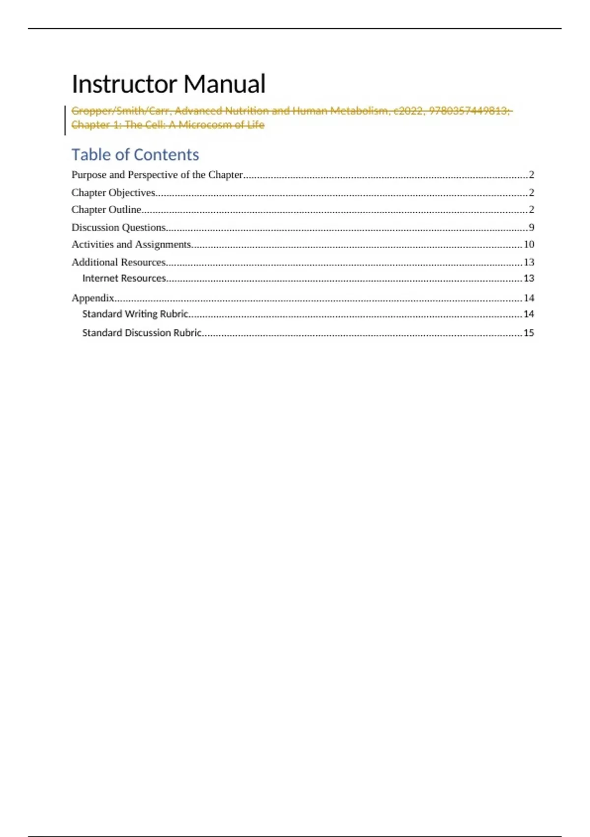 Standard Discussion Rubric...................................................................................................................15