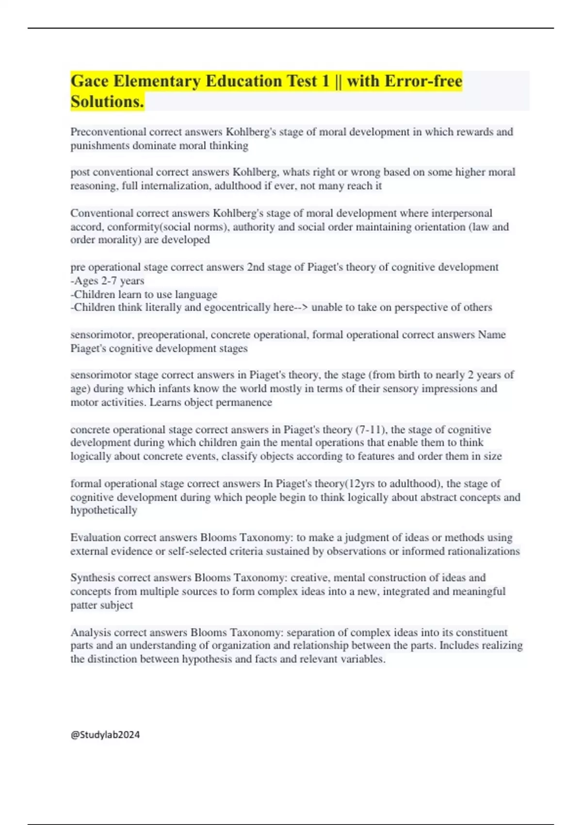 Welcome to Studylab Libraries – your go-to source for top-quality study resources across multiple subjects. Rest assured, all materials provided are of the highest standard to support your exam success. Each resource is A+ rated. I’d appreciate it if you could leave a rating and review after using the materials, as your feedback encourages me to keep adding more. Thank you!