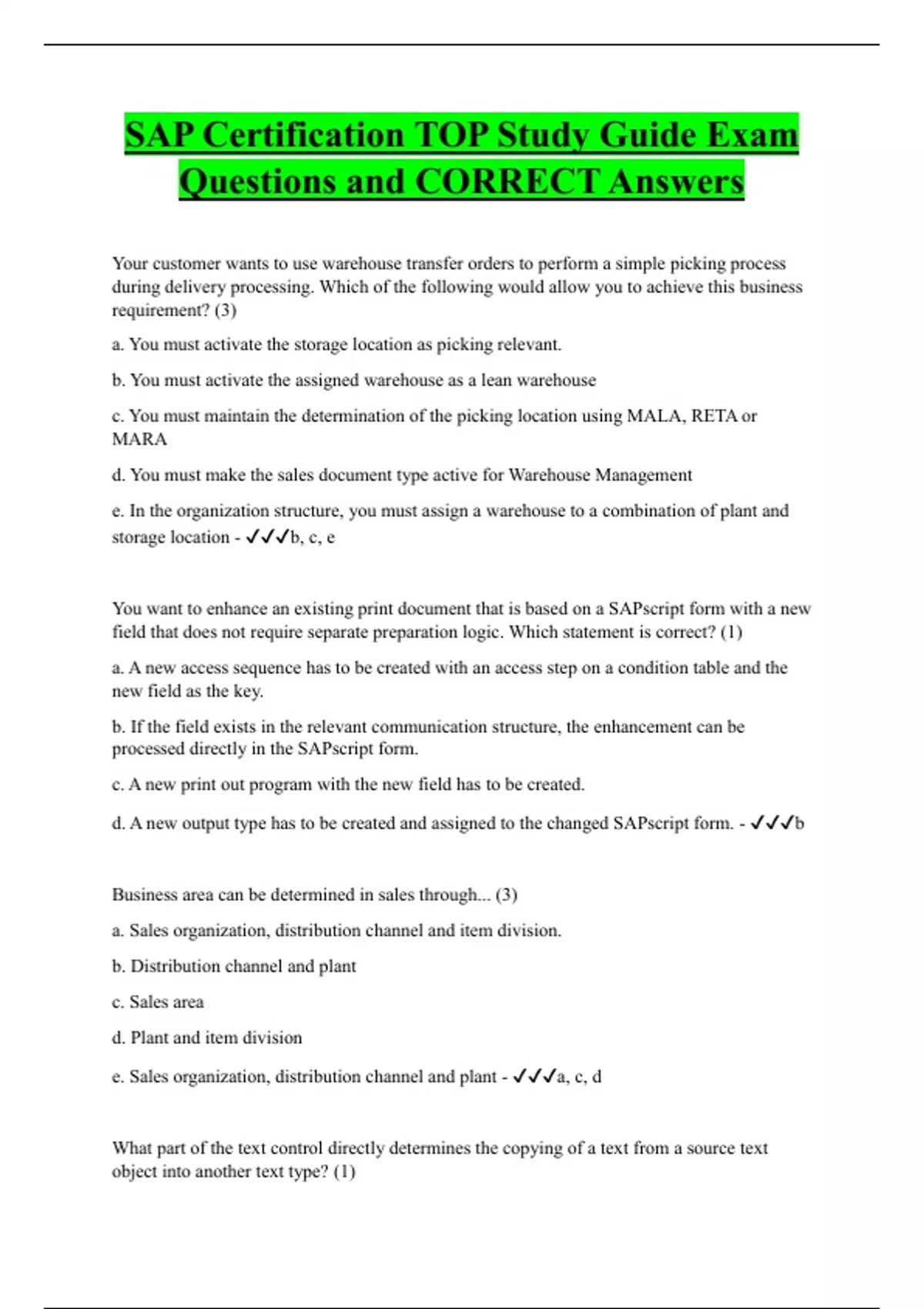 SAP Certification TOP Study Guide Exam Questions and CORRECT Answers