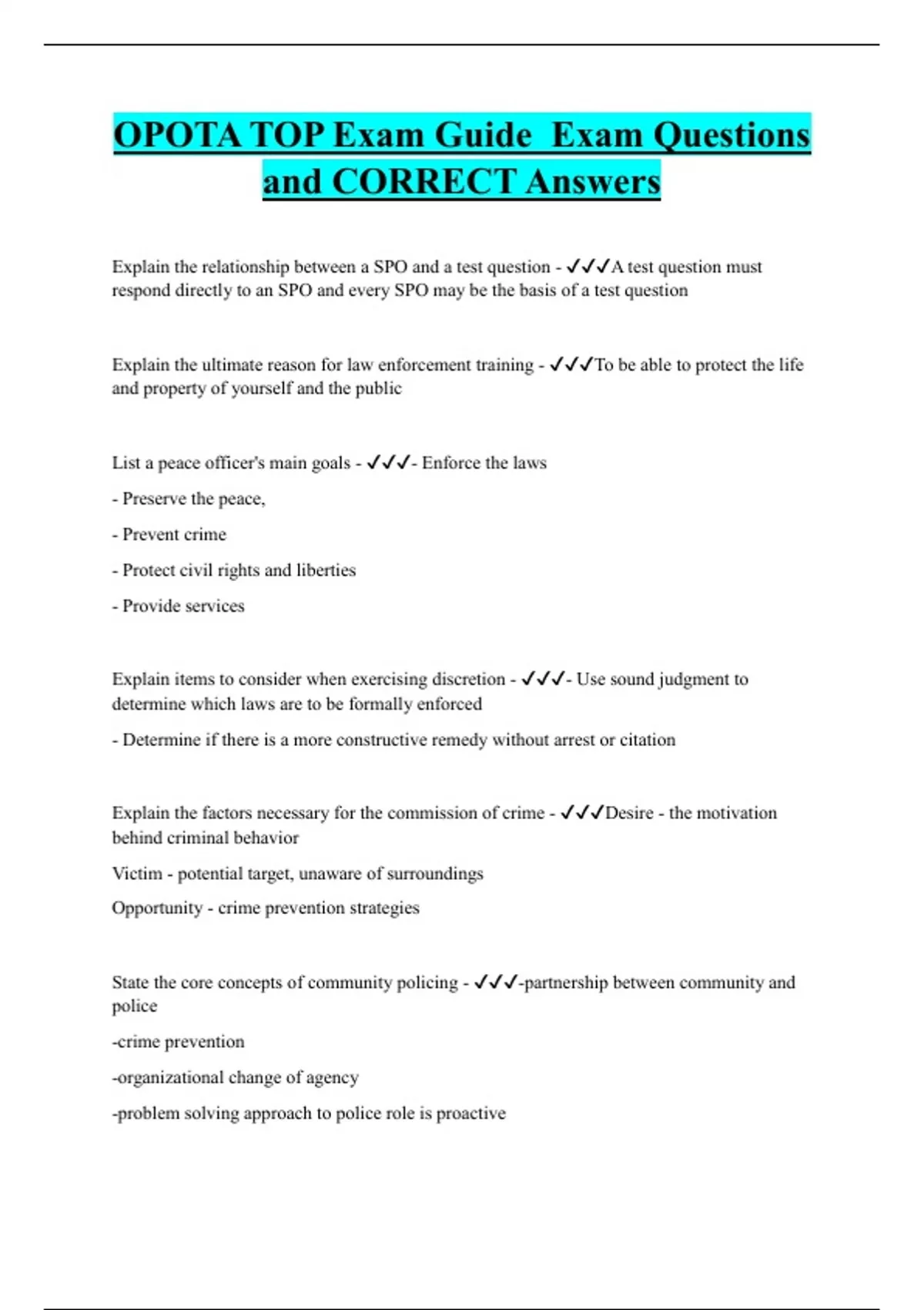 OPOTA TOP Exam Guide Exam Questions and CORRECT Answers