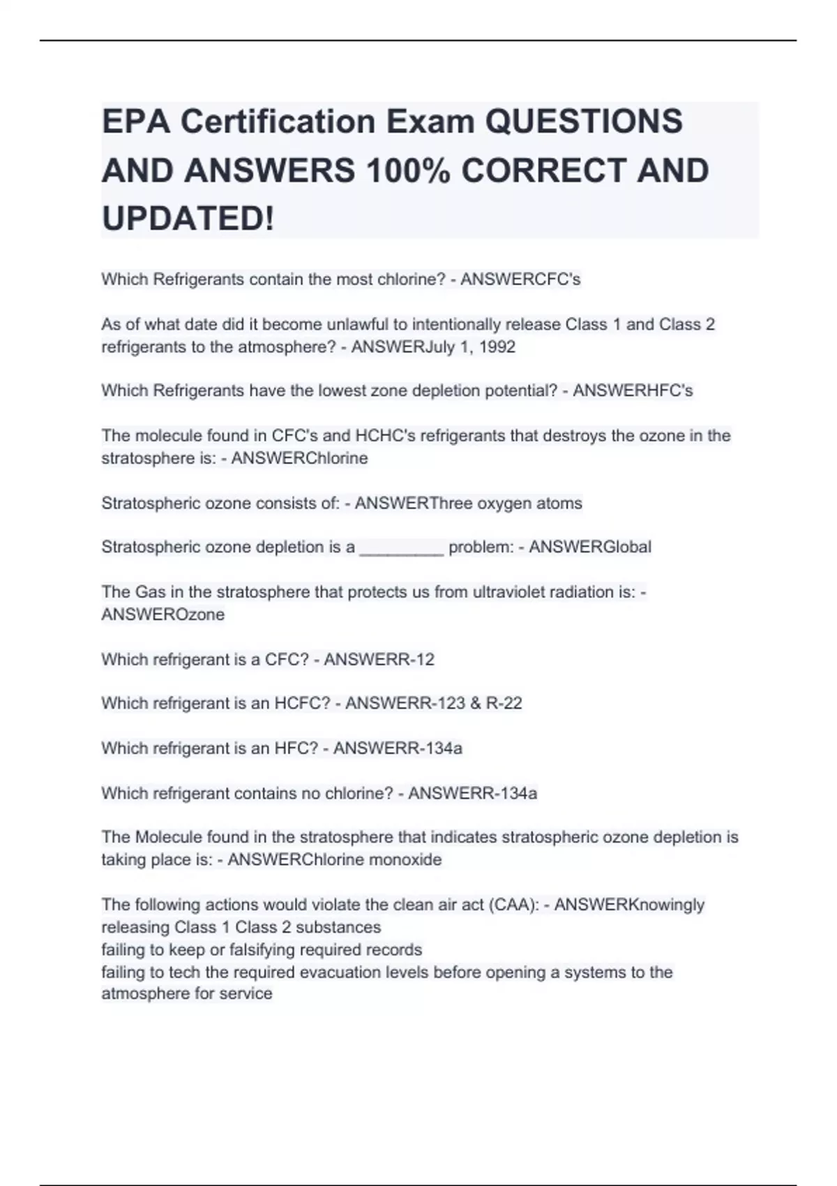 EPA Certification Exam QUESTIONS AND ANSWERS 100% CORRECT AND UPDATED!