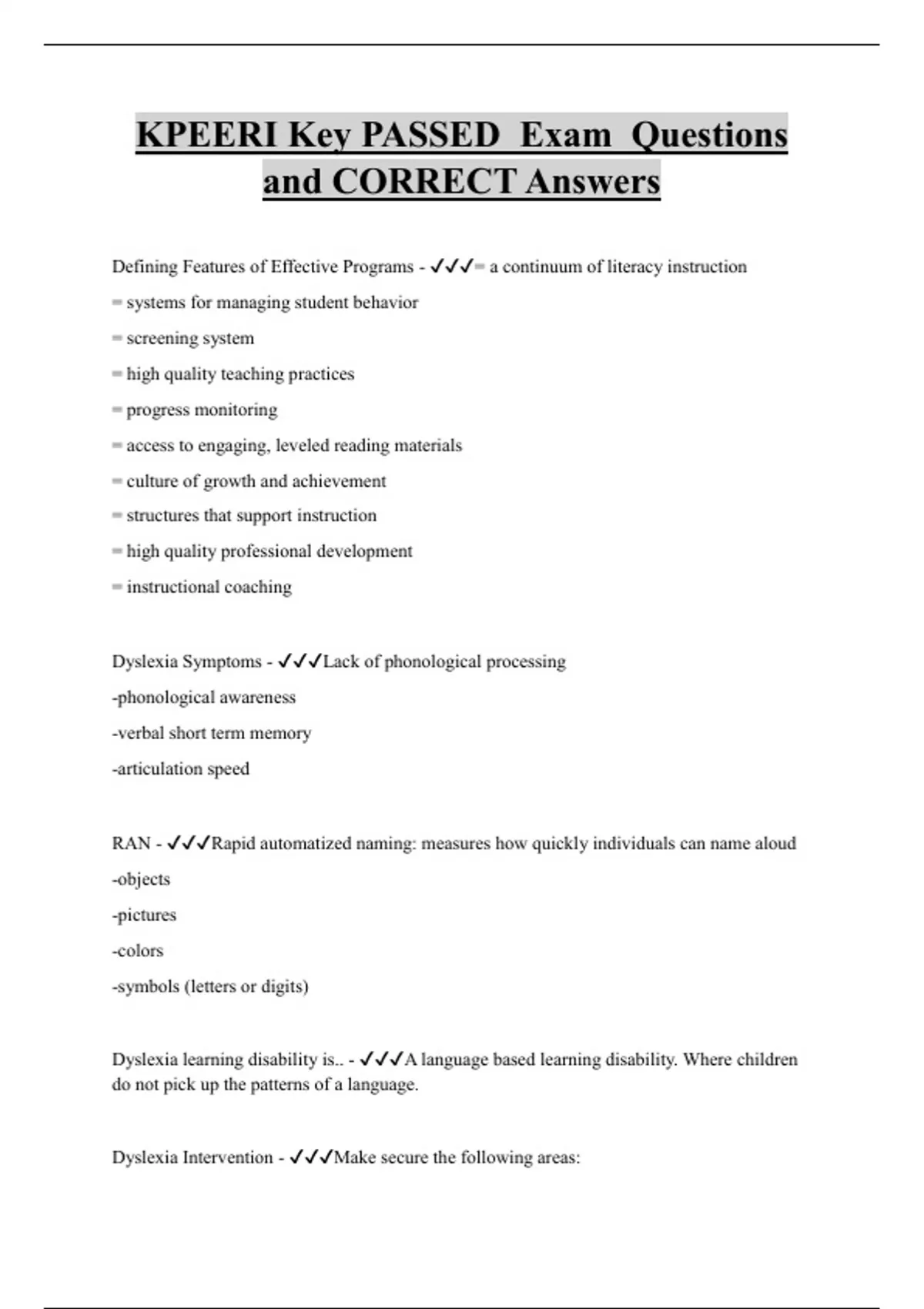 KPEERI Key PASSED Exam Questions and CORRECT Answers