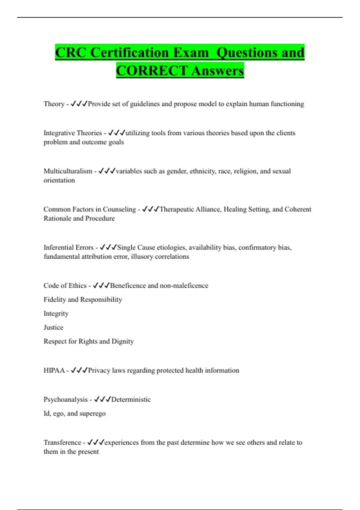 CRC Certification Exam Questions and CORRECT Answers