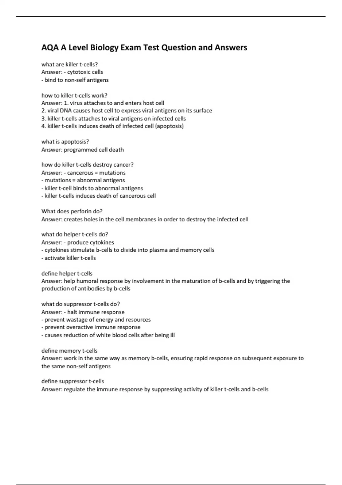 AQA A Level Biology Exam Test Question and Answers A level Biology past papers A level Biology Exam test A level Biology notes PDF A level Biology exam question and answers