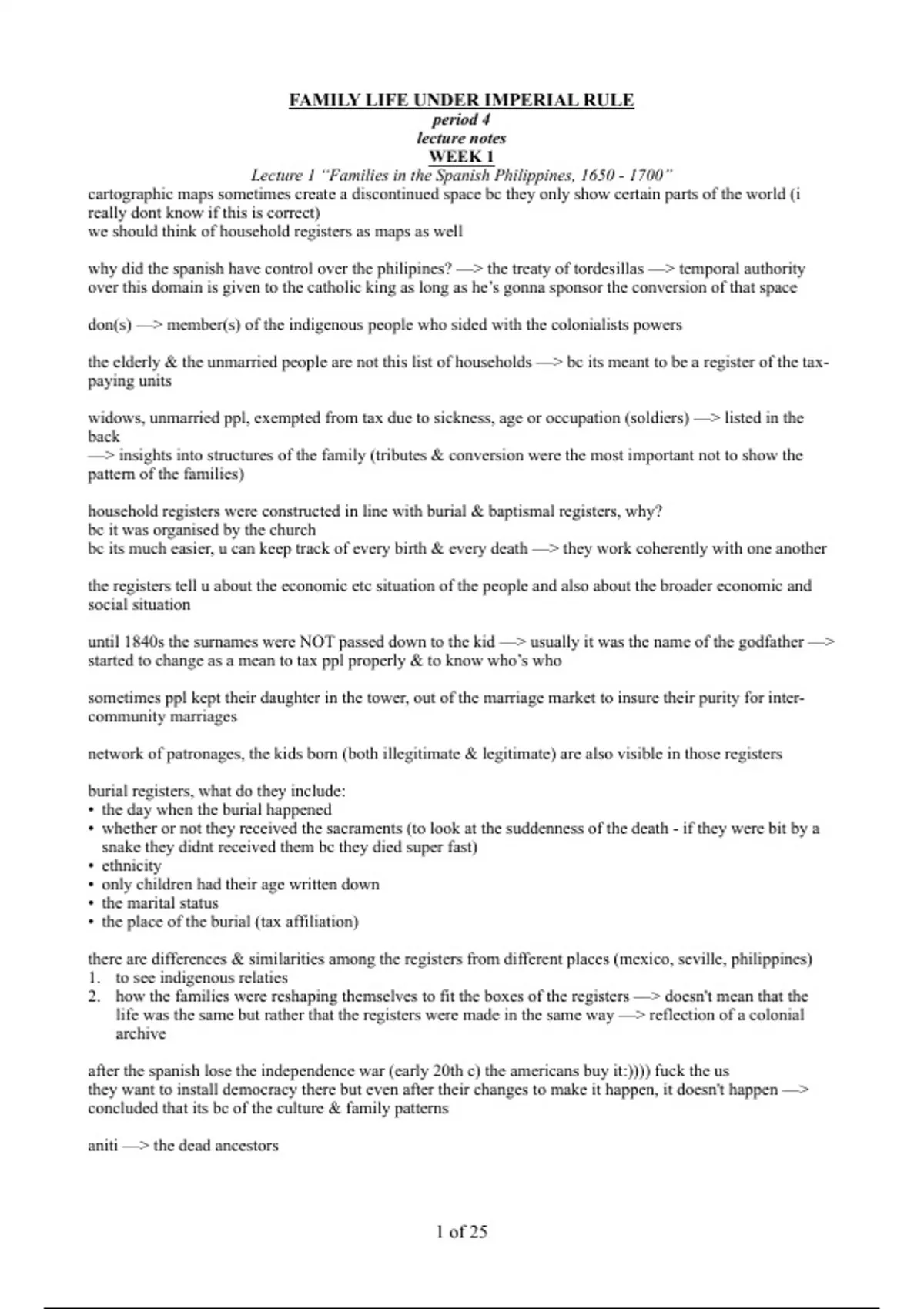 Class notes LET-GESB966 (Family Life Under Imperial Rule)