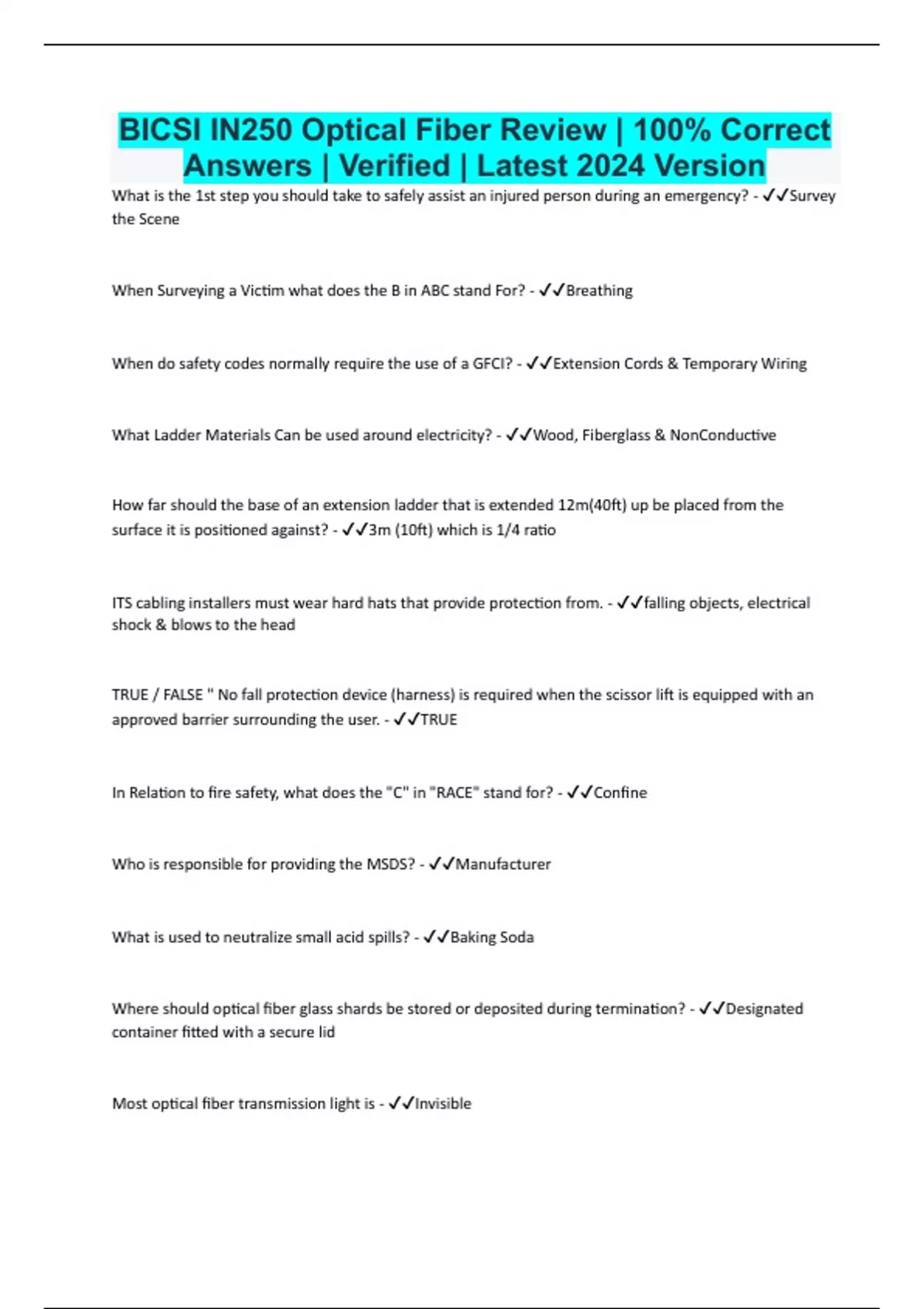 BICSI IN250 Optical Fiber Review | 100% Correct Answers | Verified | Latest 2024 Version