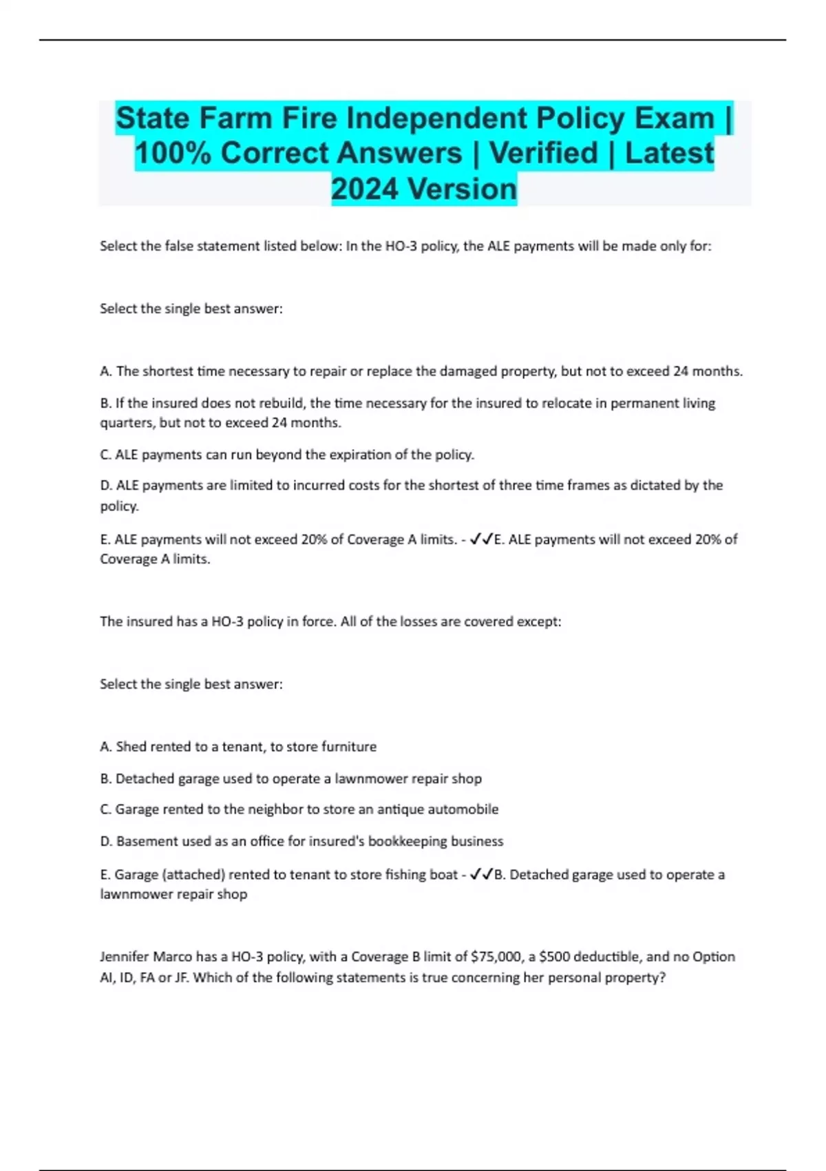 State Farm Fire Independent Policy Exam | 100% Correct Answers | Verified | Latest 2024 Version