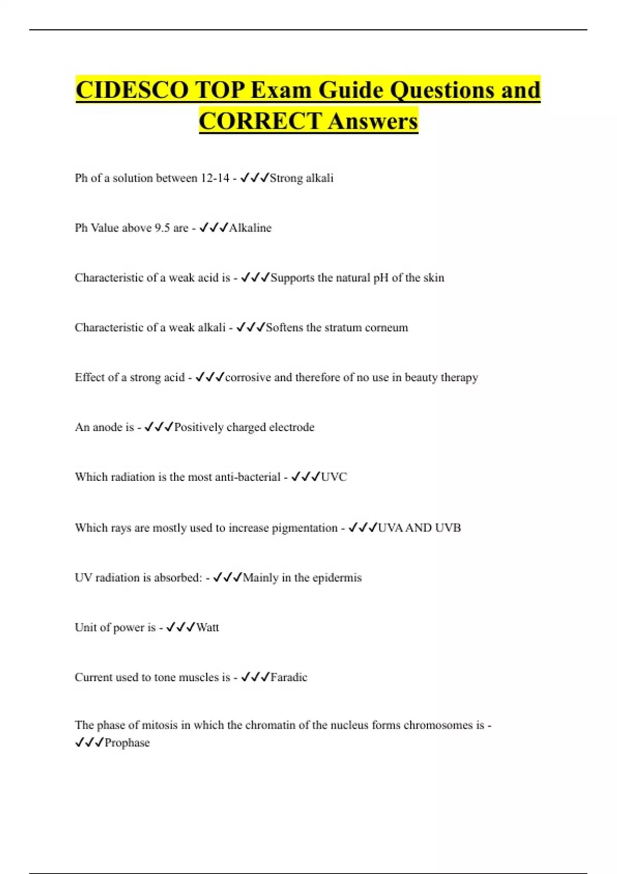 CIDESCO TOP Exam Guide Questions and CORRECT Answers