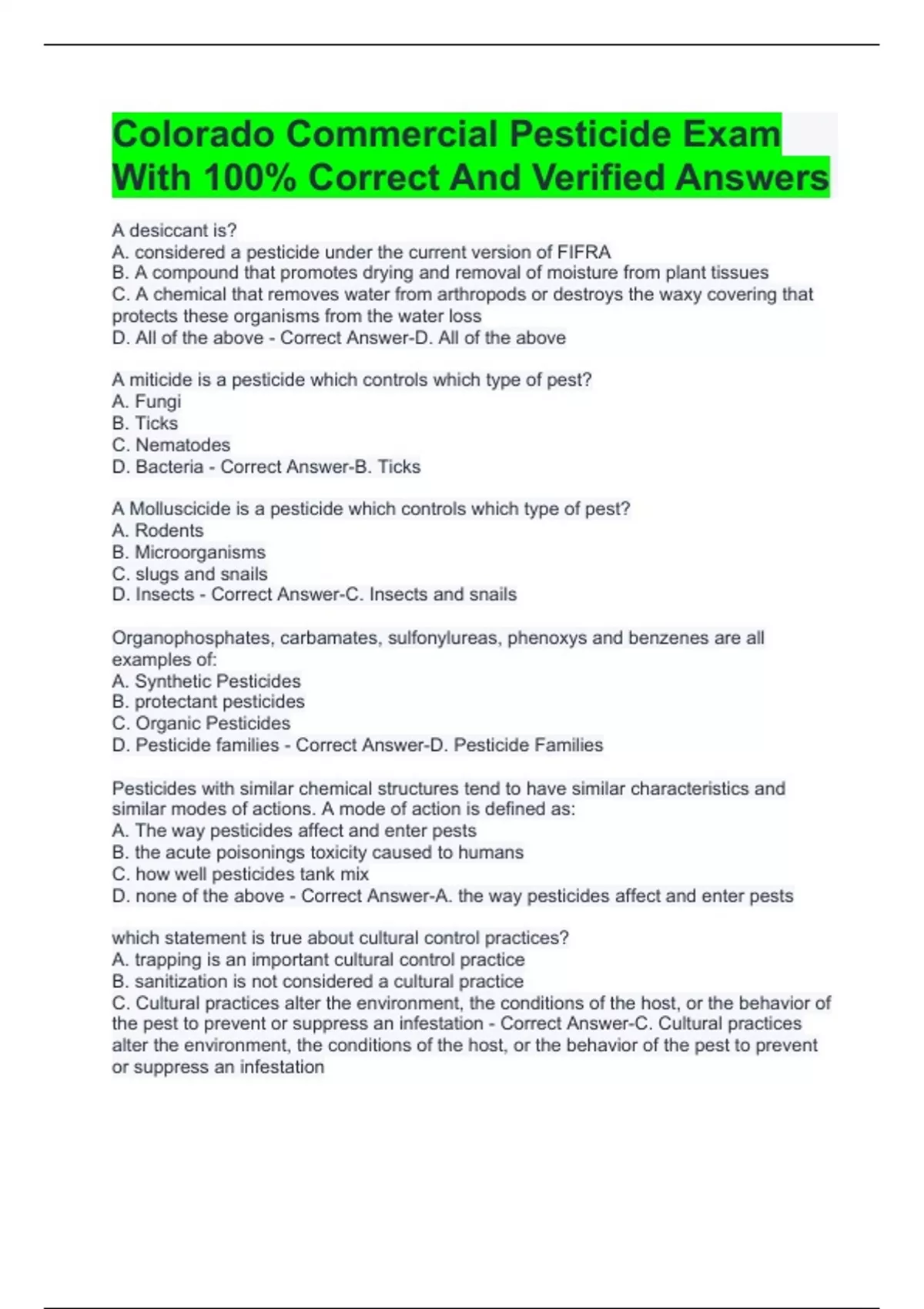 Colorado Commercial Pesticide Exam With 100% Correct And Verified Answers