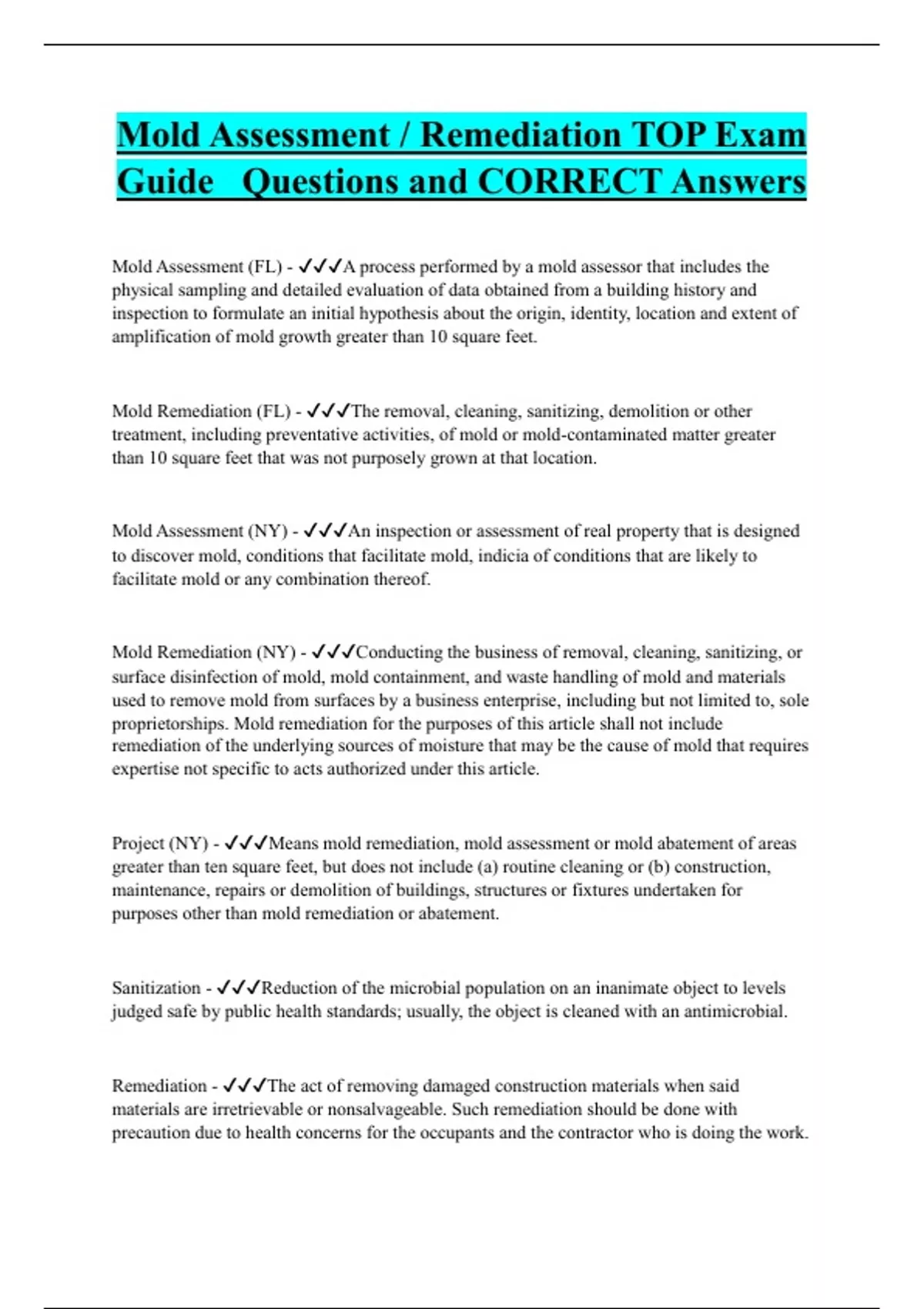 Mold Assessment / Remediation TOP Exam Guide Questions and CORRECT Answers