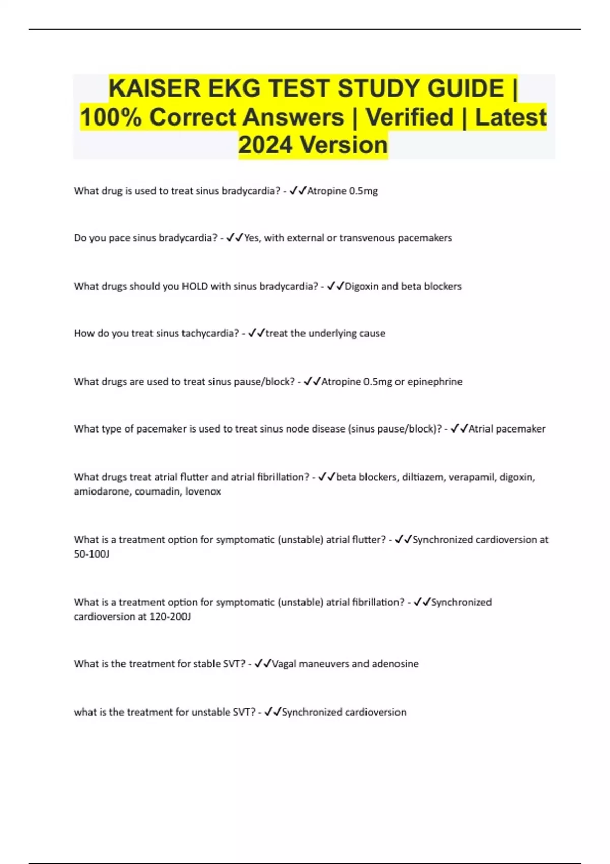 KAISER EKG TEST STUDY GUIDE | 100% Correct Answers | Verified | Latest 2024 Version