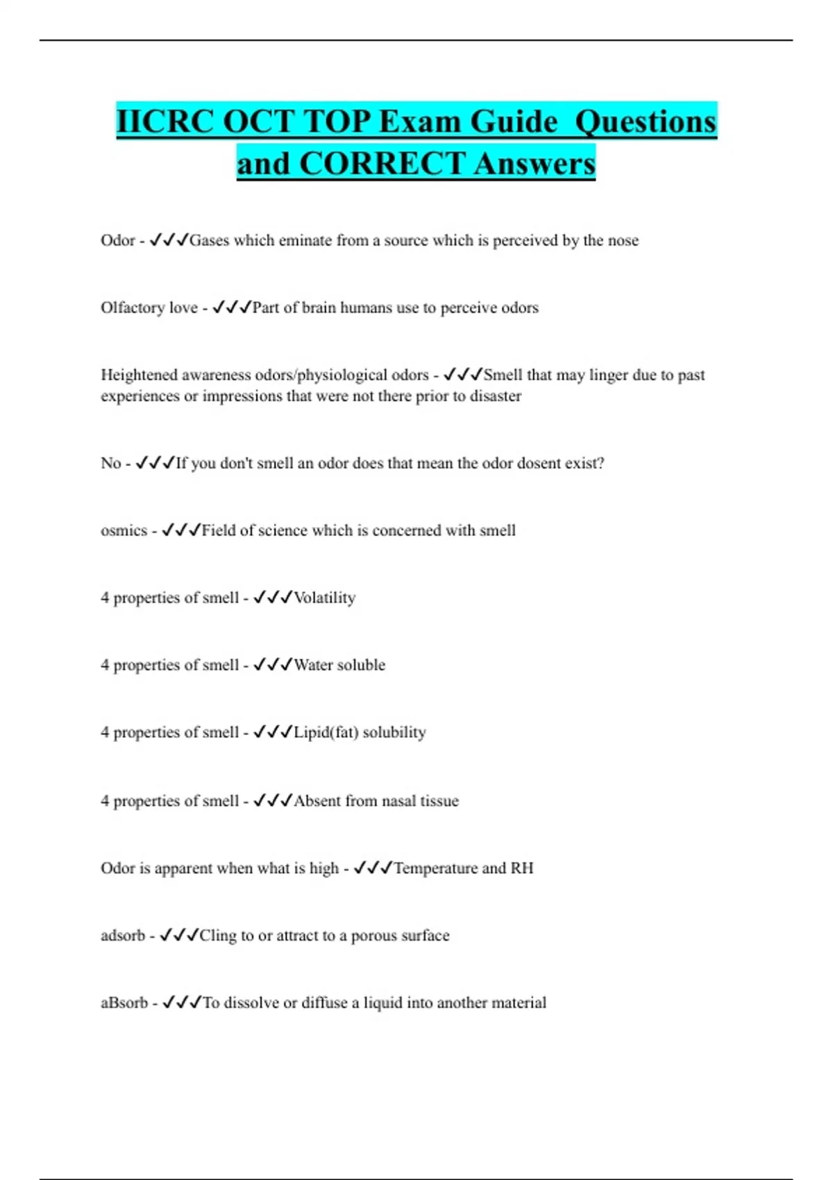 IICRC OCT TOP Exam Guide Questions and CORRECT Answers