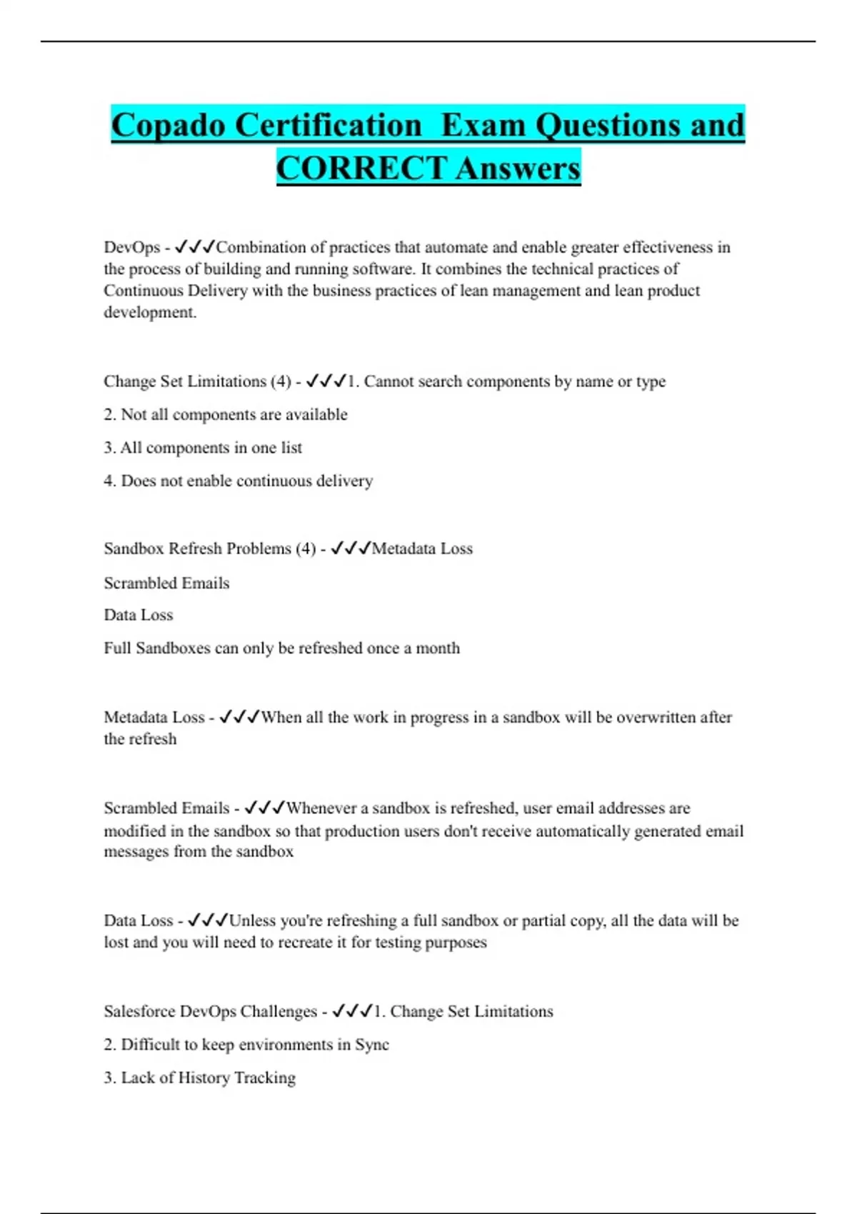 Copado Certification Exam Questions and CORRECT Answers