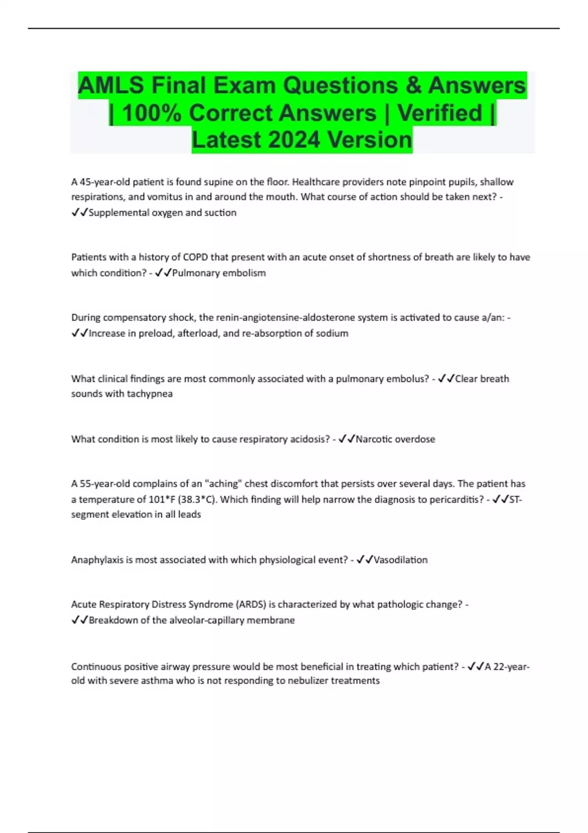AMLS Bundled Exam Resources with Complete Solution | Expert Verified 2024/2025 | Guaranteed Success