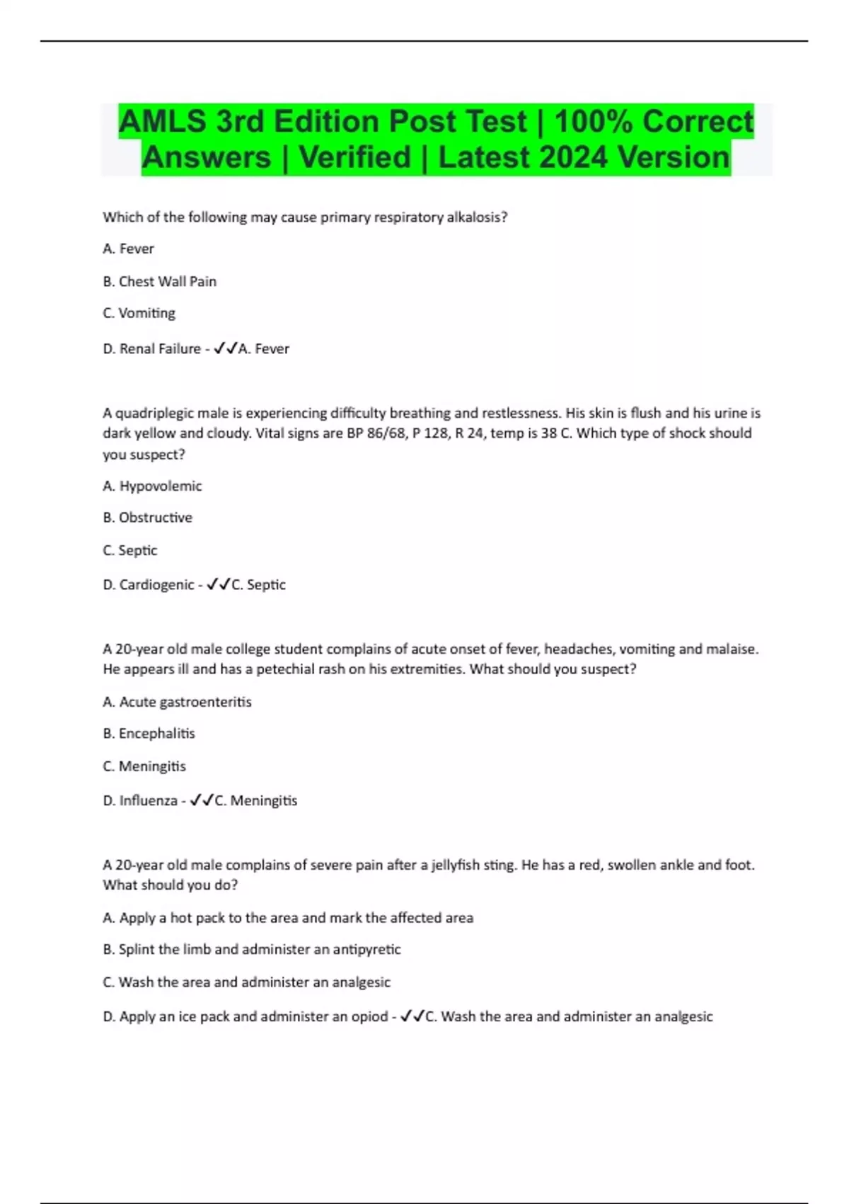 AMLS 3rd Edition Post Test | 100% Correct Answers | Verified | Latest 2024 Version
