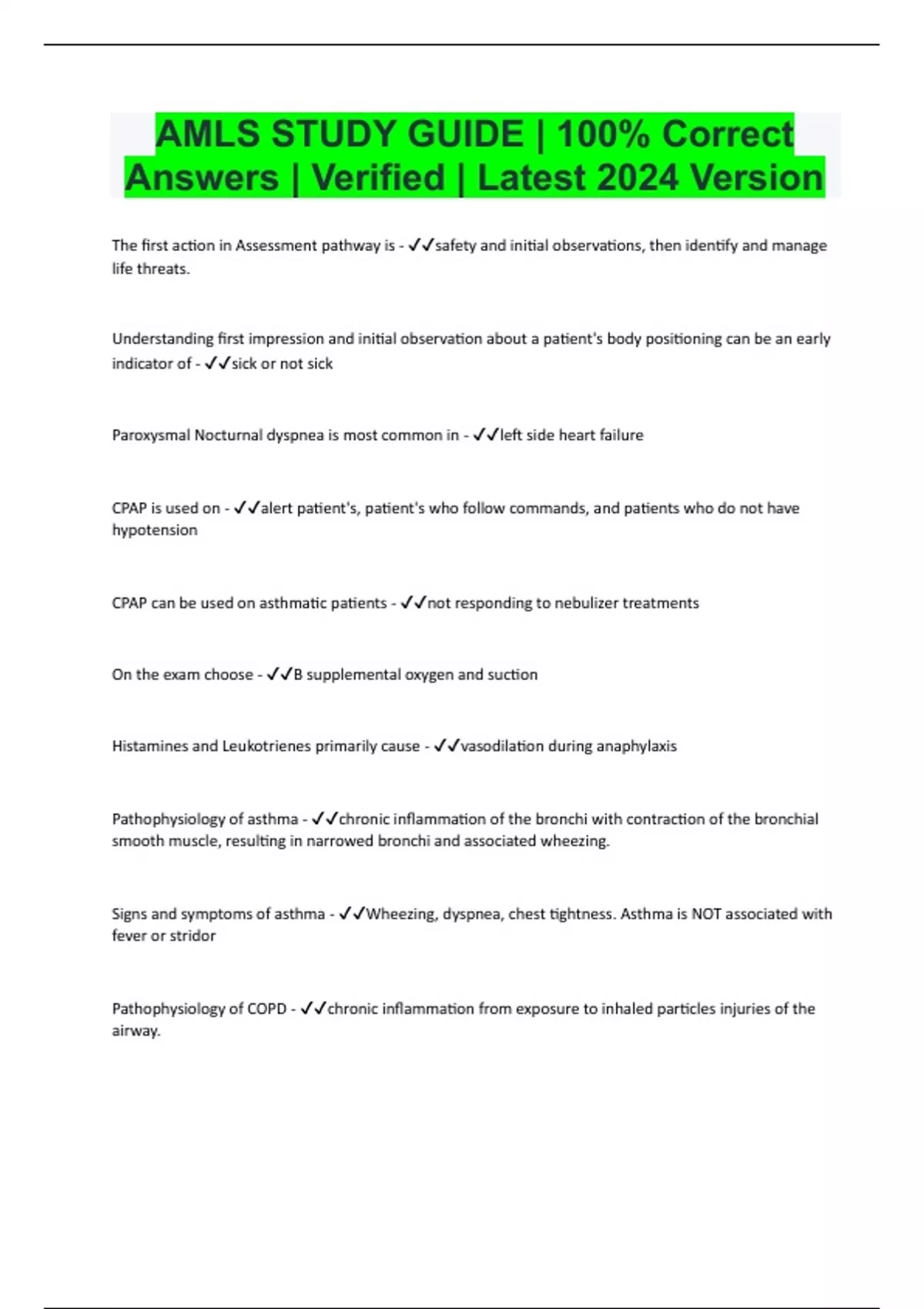 AMLS Bundled Exam Resources with Complete Solution | Expert Verified 2024/2025 | Guaranteed Success