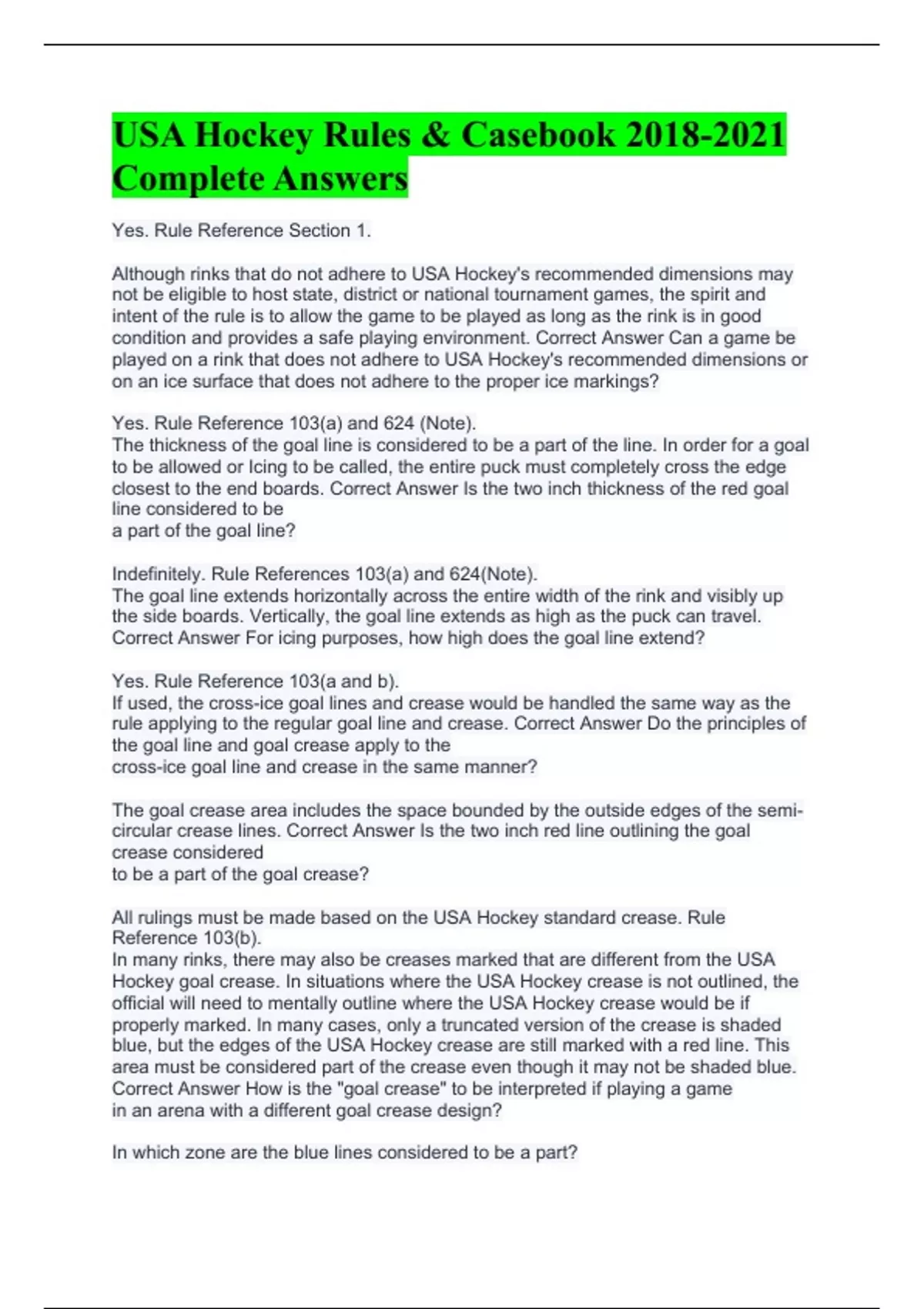 USA Hockey Rules & Casebook Complete Answers