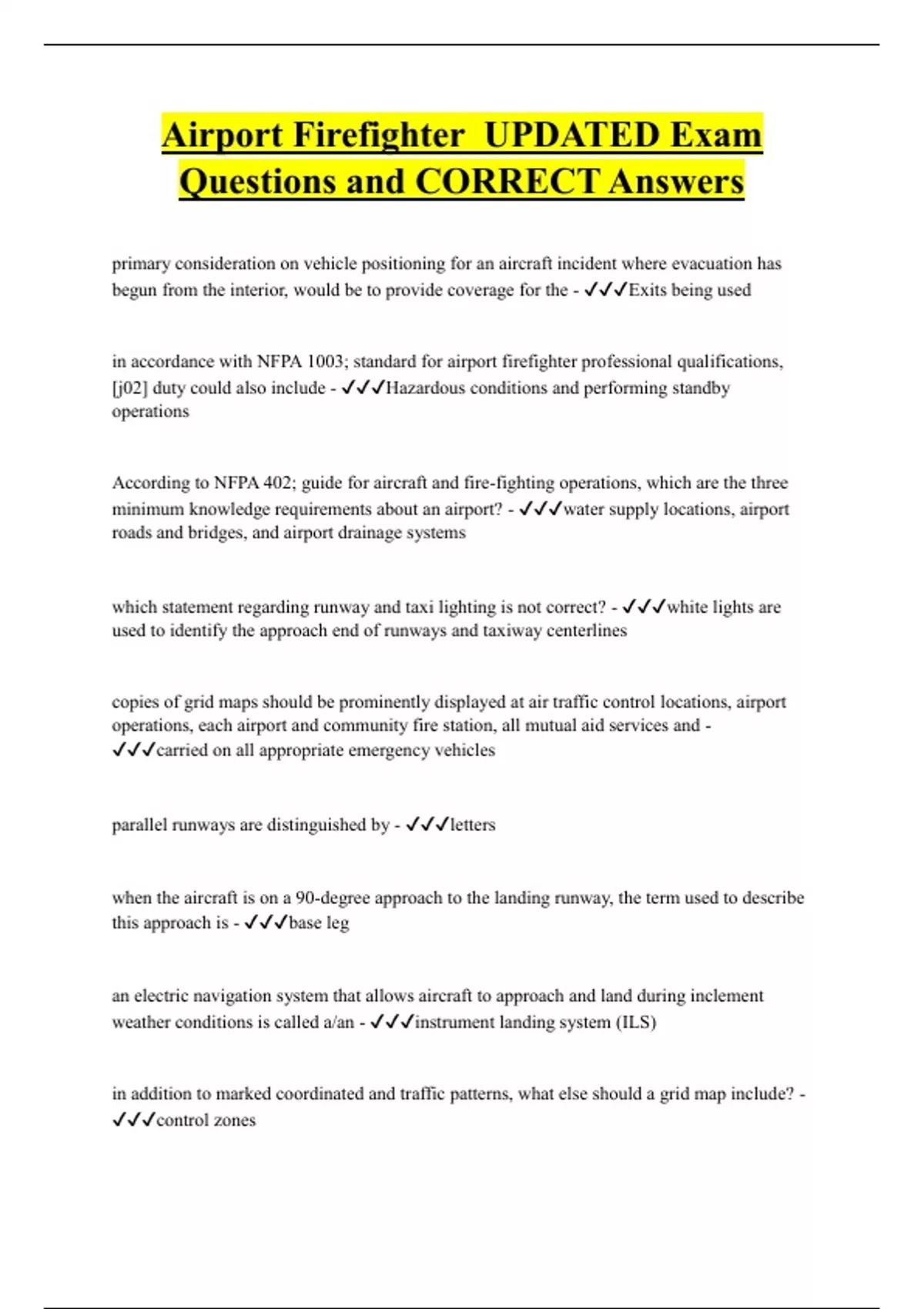 Airport Firefighter UPDATED Exam Questions and CORRECT Answers