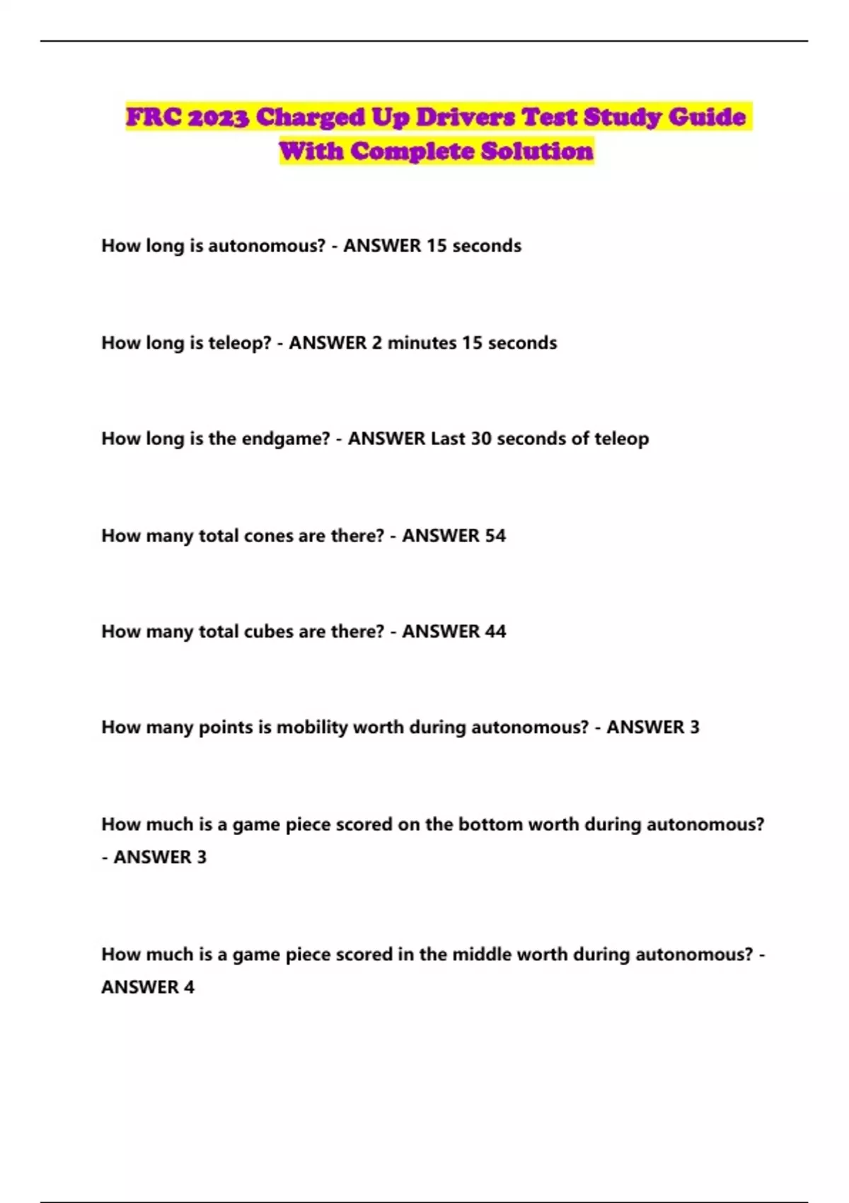 FRC 2023 Charged Up Drivers Test Study Guide With Complete Solution