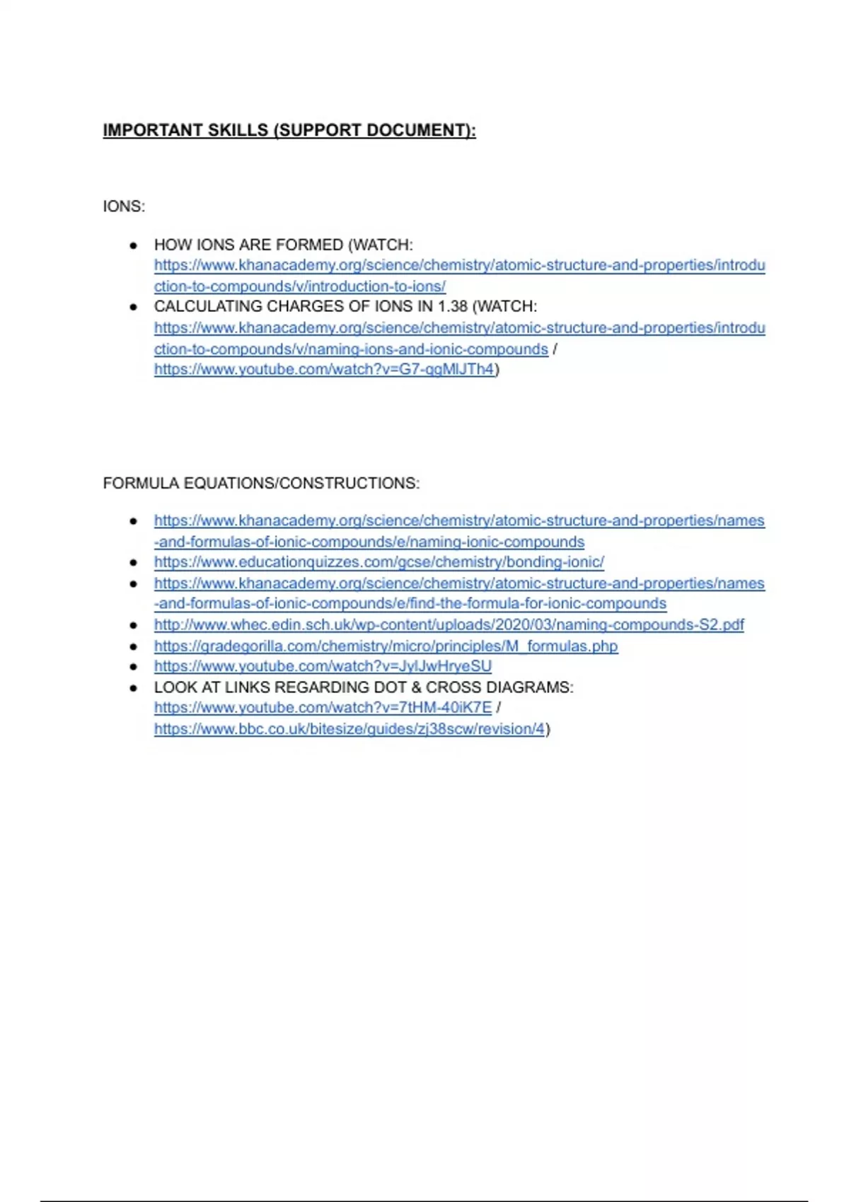 IGCSE chemistry can be difficult, but it doesn’t have to be. Use this support document for important and core skills in IGCSE chemistry such has ions and formula equations and constructions.
