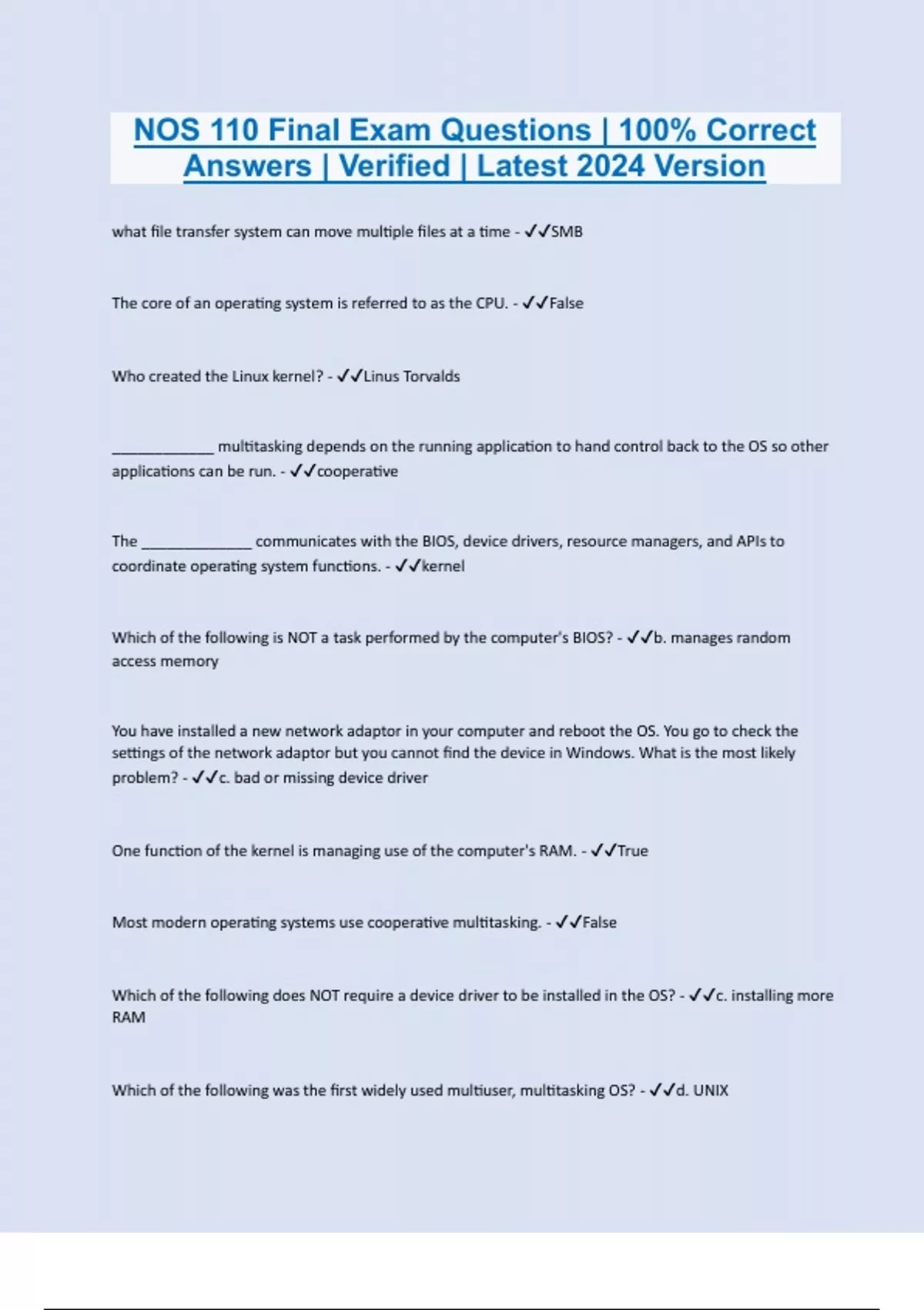 NOS 110 Bundled Exam Resources with Complete Solution | Expert Verified 2024/2025 | Guaranteed Success