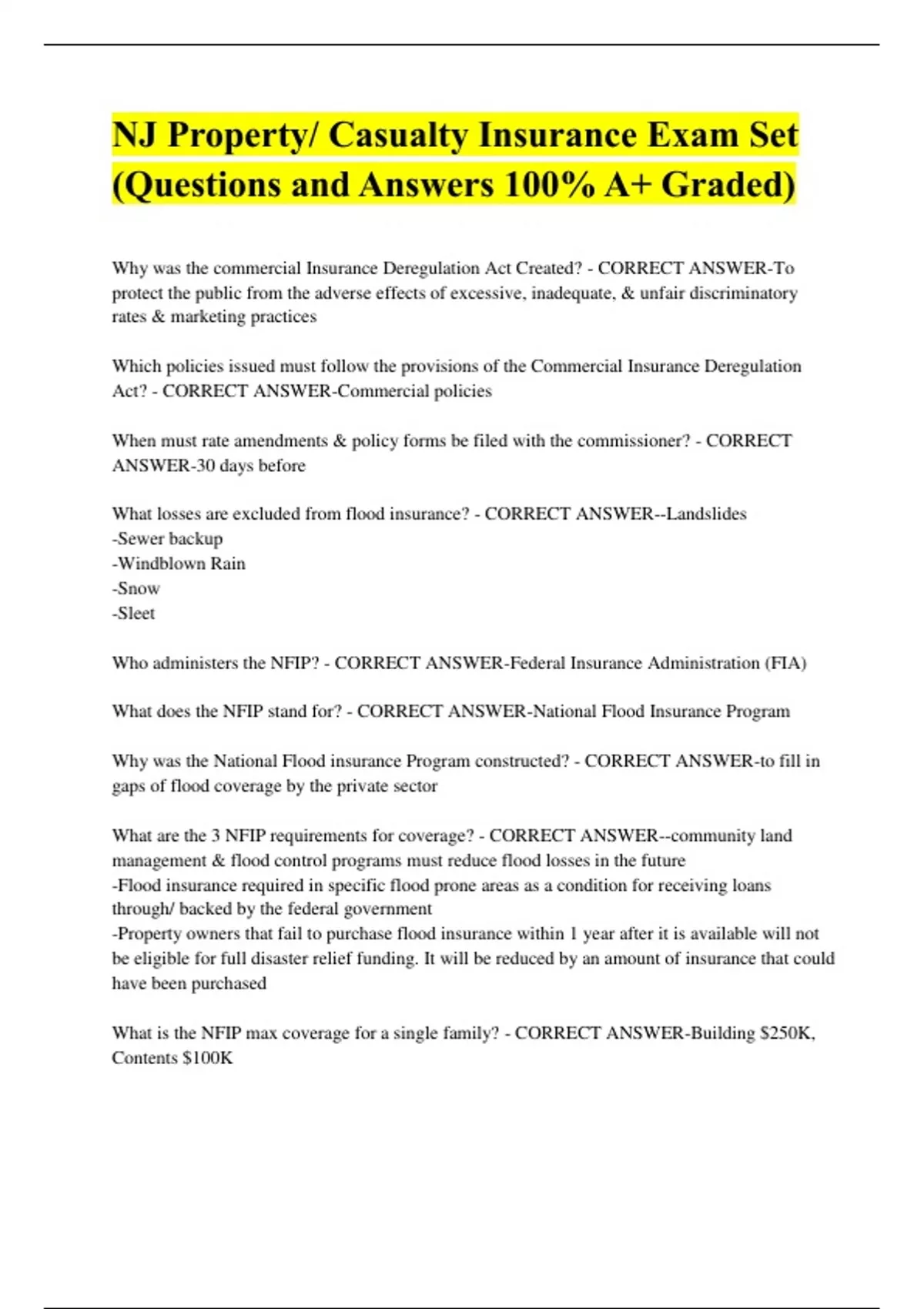 NJ Property/ Casualty Insurance Exam Set (Questions and Answers 100% A+ Graded)