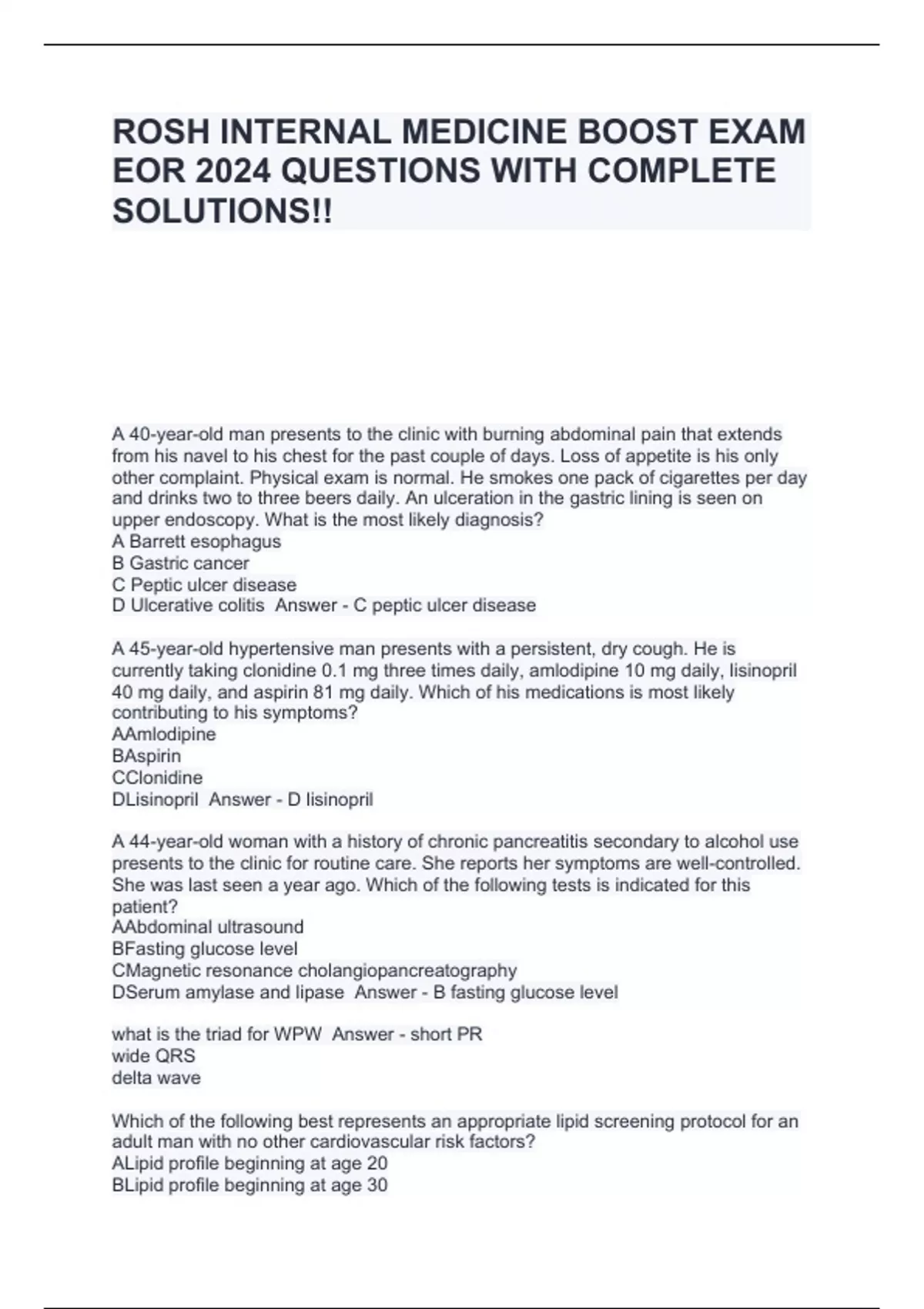 ROSH INTERNAL MEDICINE BOOST EXAM EOR 2024 QUESTIONS WITH COMPLETE SOLUTIONS!!