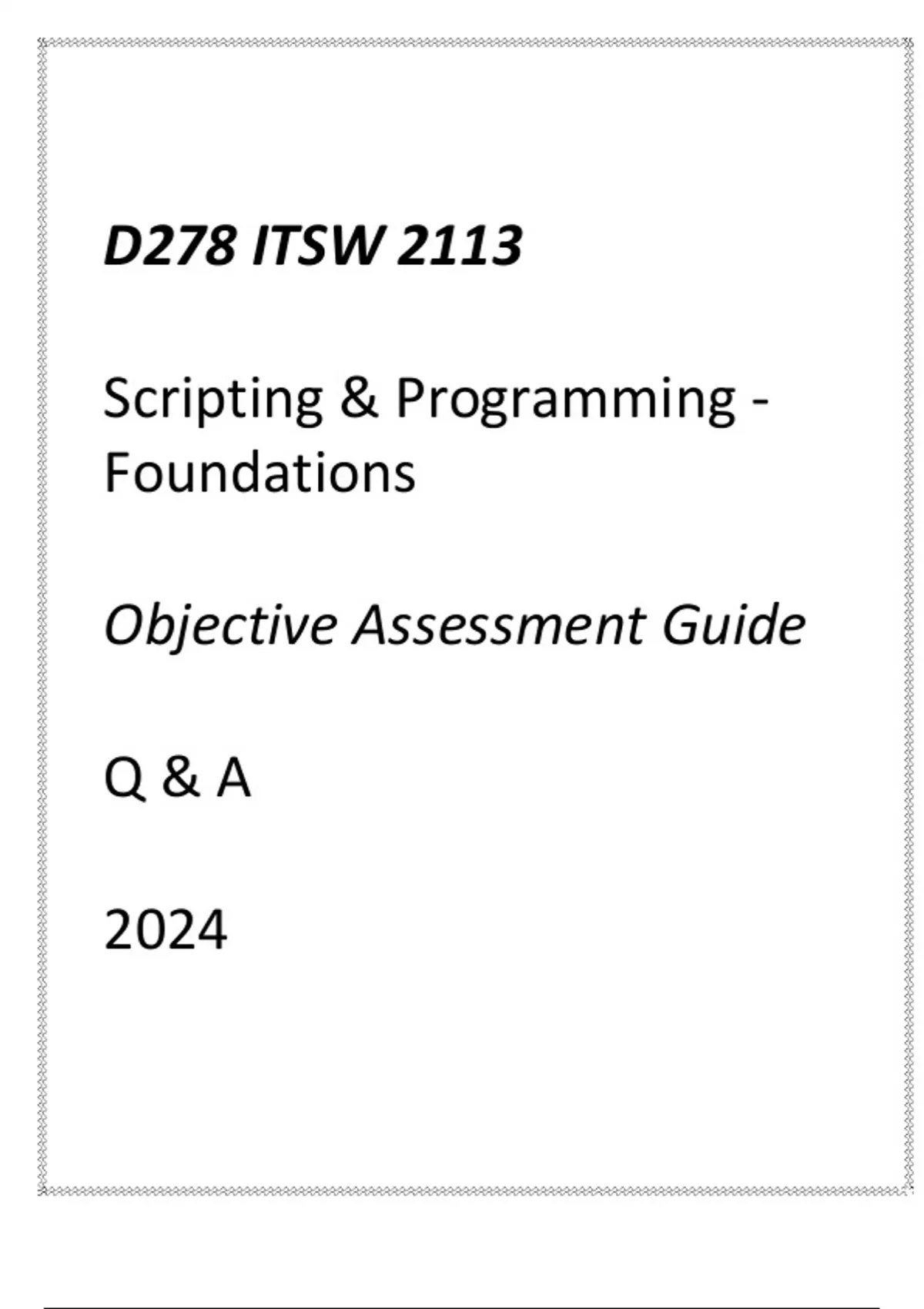 (WGU D278) ITEC 2113 Scripting & Programming Foundations Objective Assessment Guide 2024(WGU D278) ITEC 2113 Scripting & Programming Foundations Objective Assessment Guide 2024(WGU D278) ITEC 2113 Scripting & Programming Foundations Objective Assessment Guide 2024
