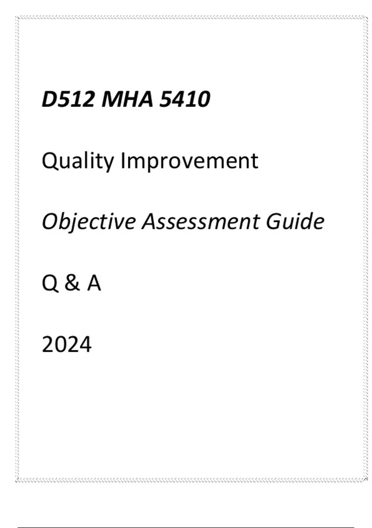 (WGU D512) MHA 5410 Quality Improveme(WGU D512) MHA 5410 Quality Improvement Objective Assessment Guide Objective Assessment Guide 2024.(WGU D512) MHA 5410 Quality Improvement Objective Assessment Guide 2024.(WGU D512) MHA 5410 Quality Improvement Objective Assessment Guide 2024.