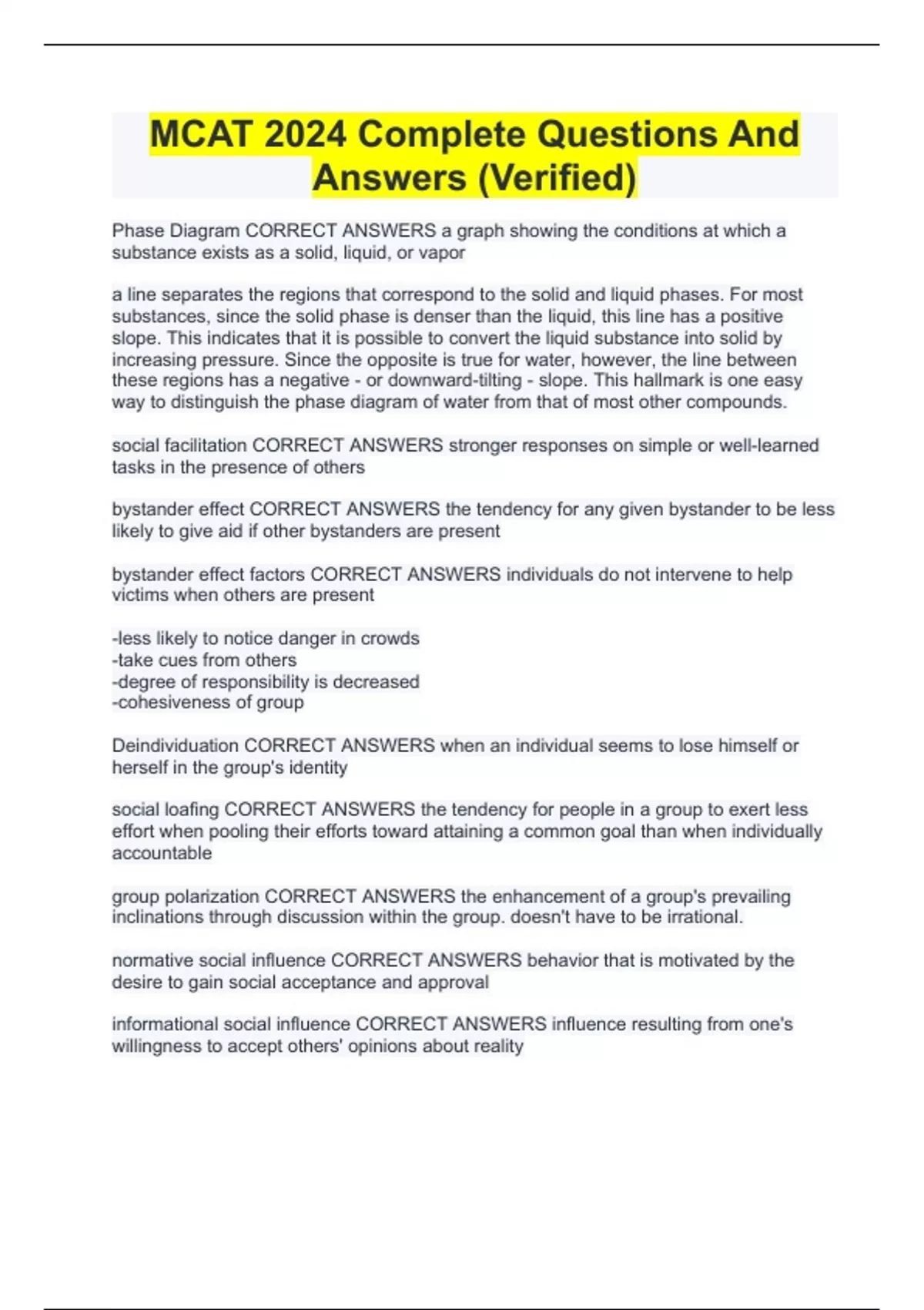 MCAT 2024 Complete Questions And Answers (Verified)