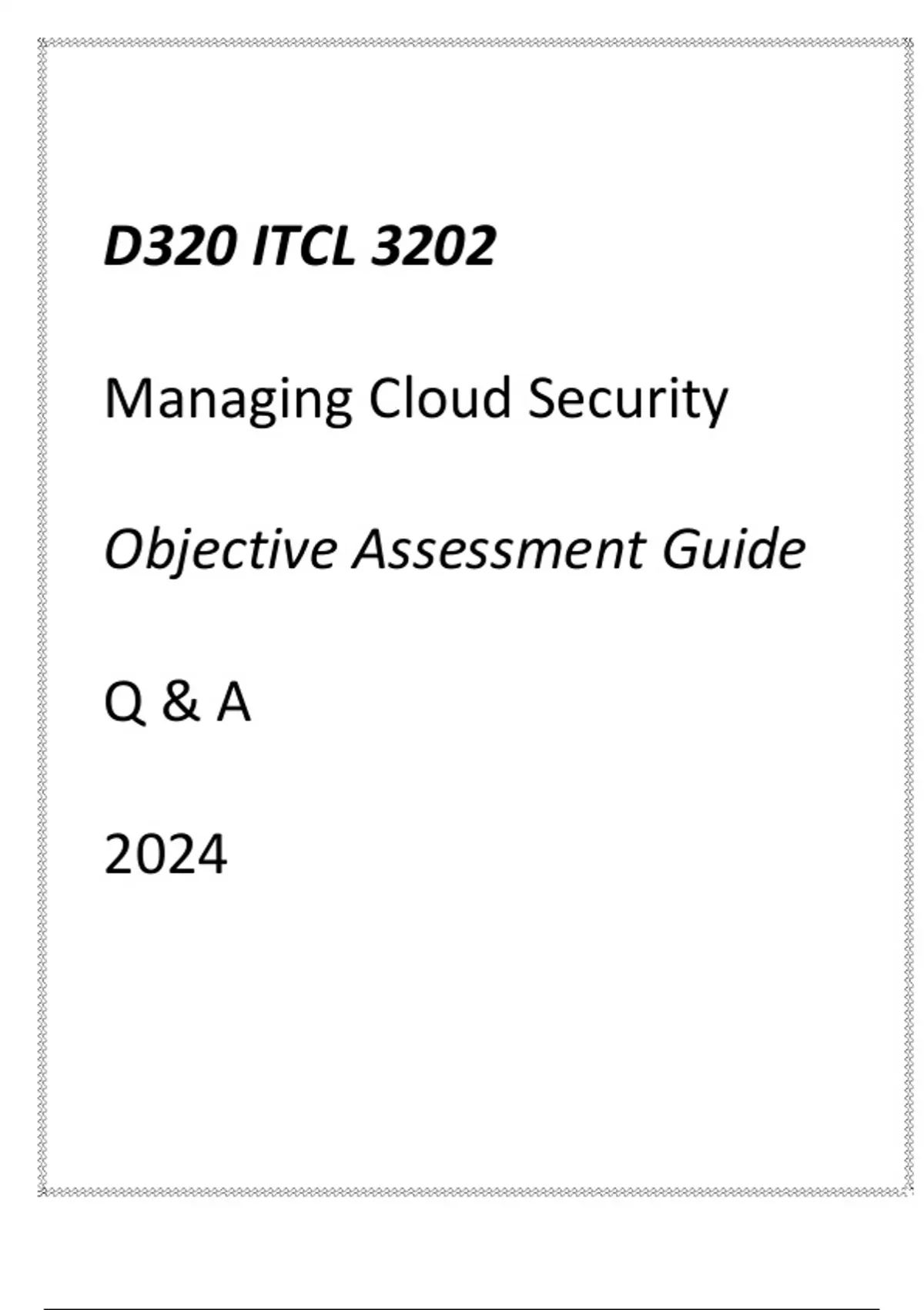 (WGU D320) ITCL 3202 Managing Cloud Security Objective Assessment Guide 2024.(WGU D320) ITCL 3202 Managing Cloud Security Objective Assessment Guide 2024.(WGU D320) ITCL 3202 Managing Cloud Security Objective Assessment Guide 2024.