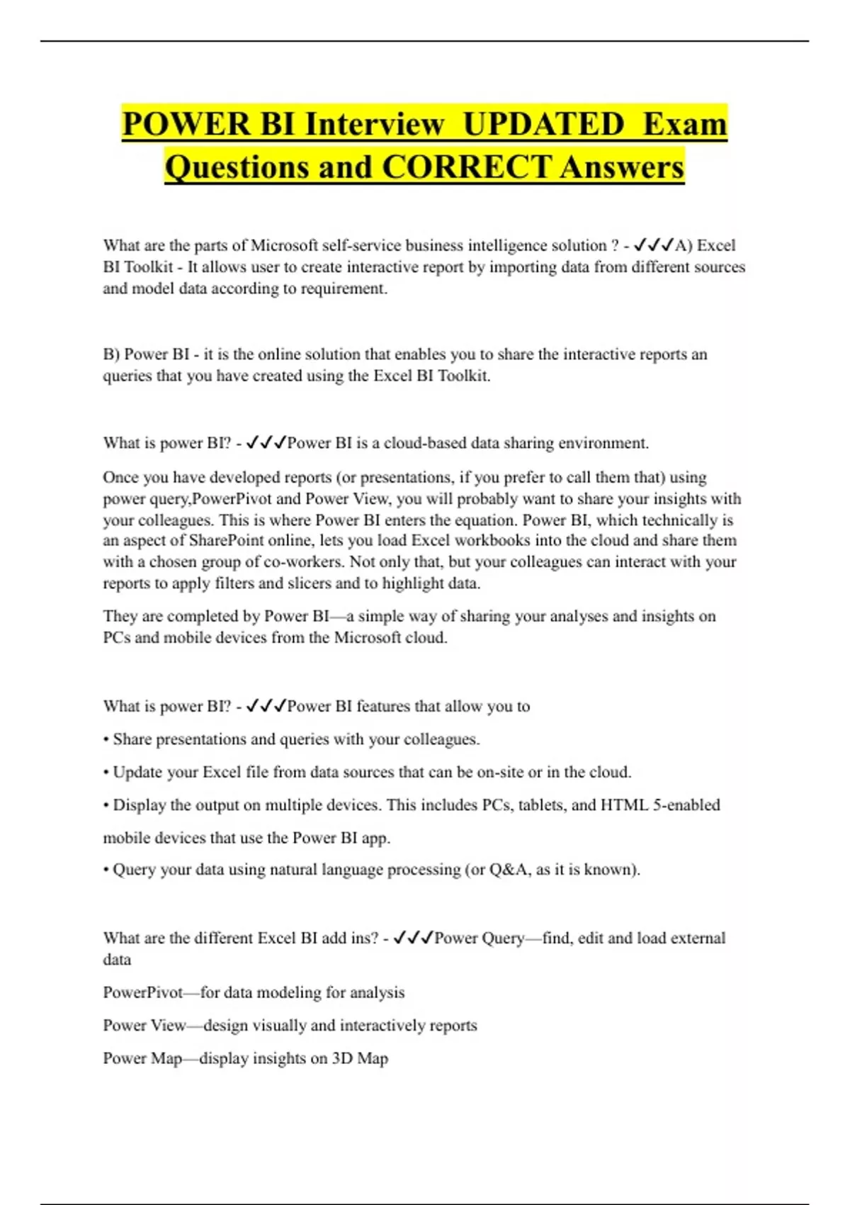 POWER BI Interview UPDATED Exam Questions and CORRECT Answers