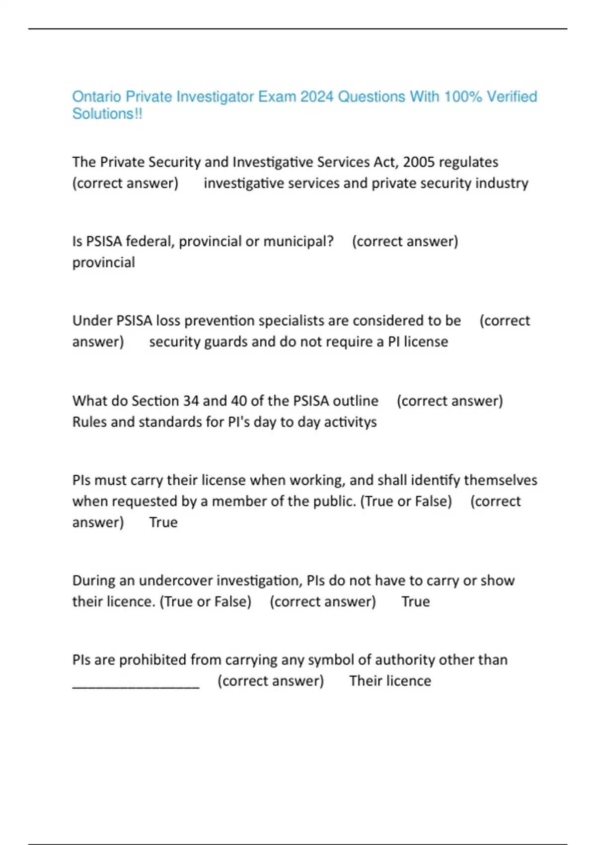 Ontario Private Investigator Exam 2024 Questions With 100% Verified Solutions!!