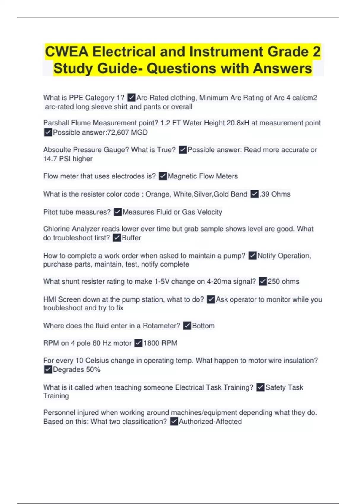 CWEA Electrical and Instrument Grade 2 Study Guide- Questions with Answers